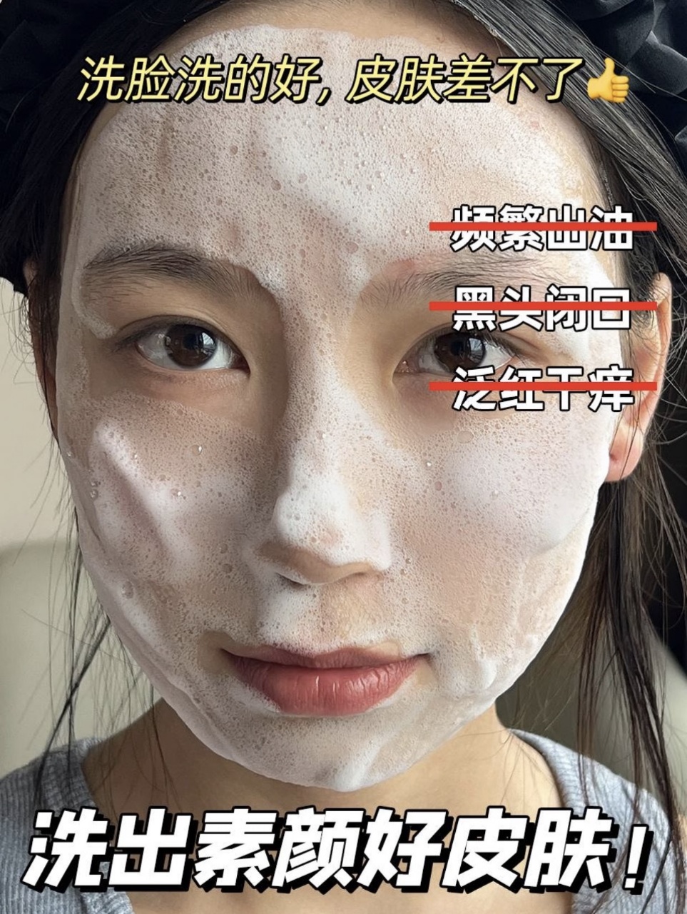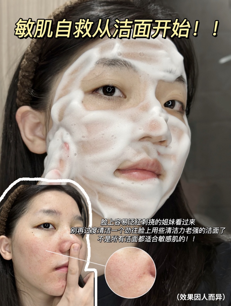 全程泡沫包裹肌肤,手指几乎都摩擦不到脸蛋,主打一个全程守护咱们敏肌的皮脂膜❗️