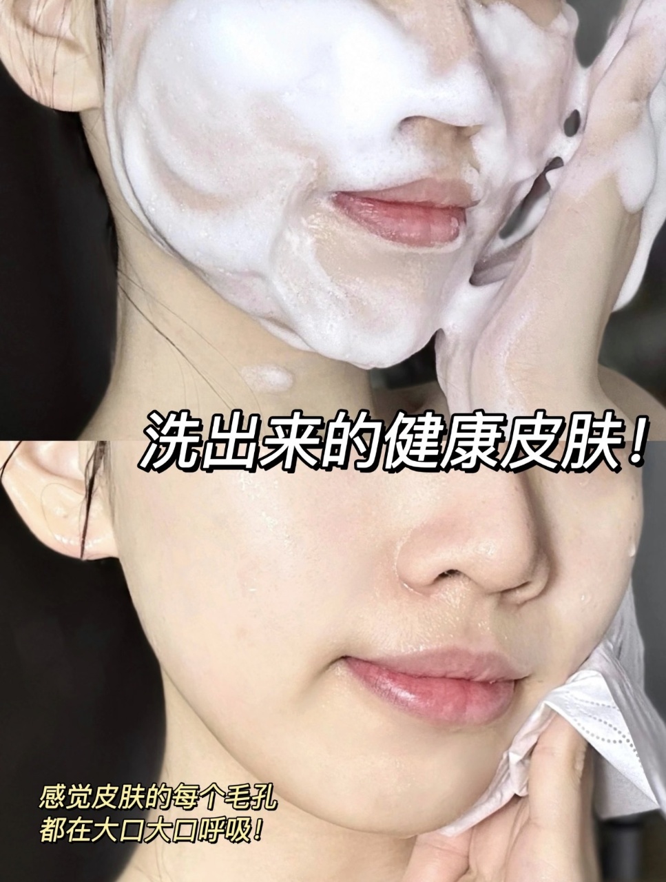 用水冲几下就洗得干干净净,一点不假滑,洗完脸蛋清爽又水润💦完全不紧绷