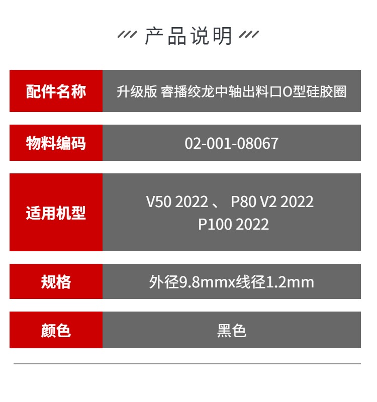 2022款/2023款 睿播绞龙中轴出料口O型硅胶圈
