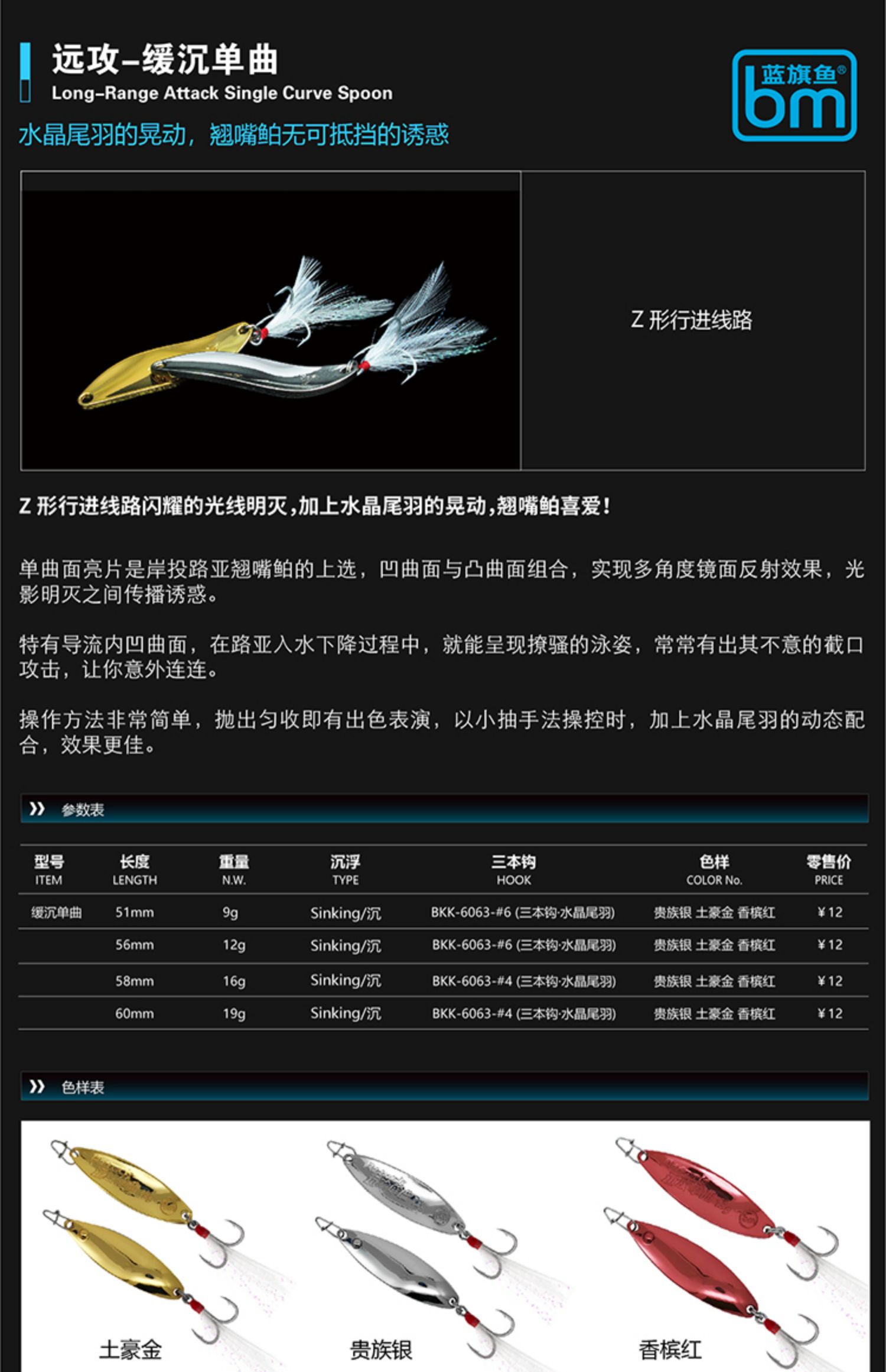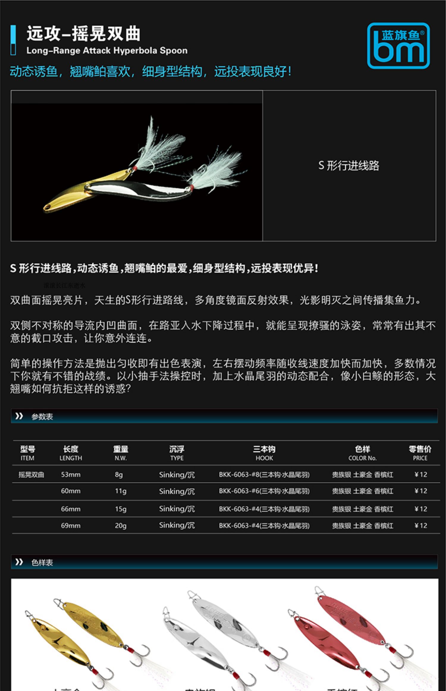 蓝旗鱼路亚饵摇晃毒眼水钻单曲双曲亮片铁板翘嘴鳜鱼海鲈假饵