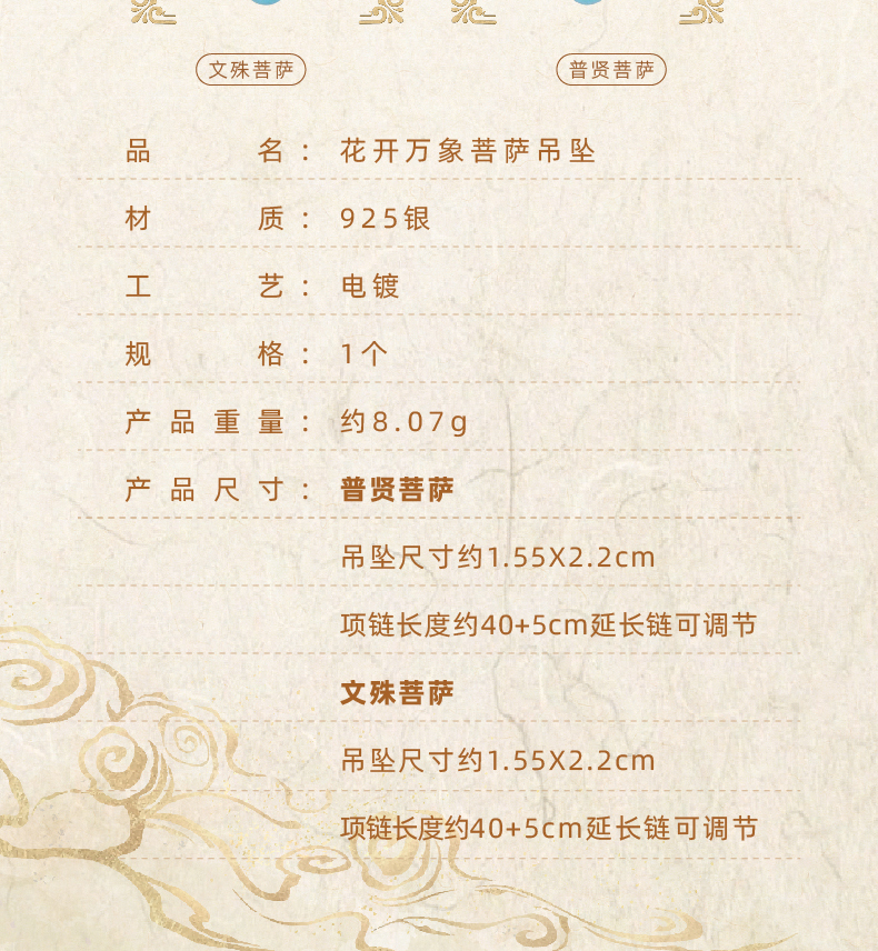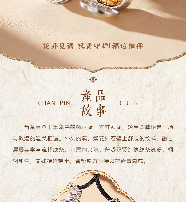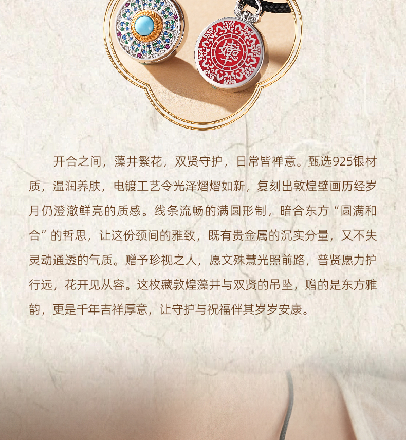 敦煌研究院【花开万象菩萨吊坠】 文创项链925银护身挂件银吊坠项坠