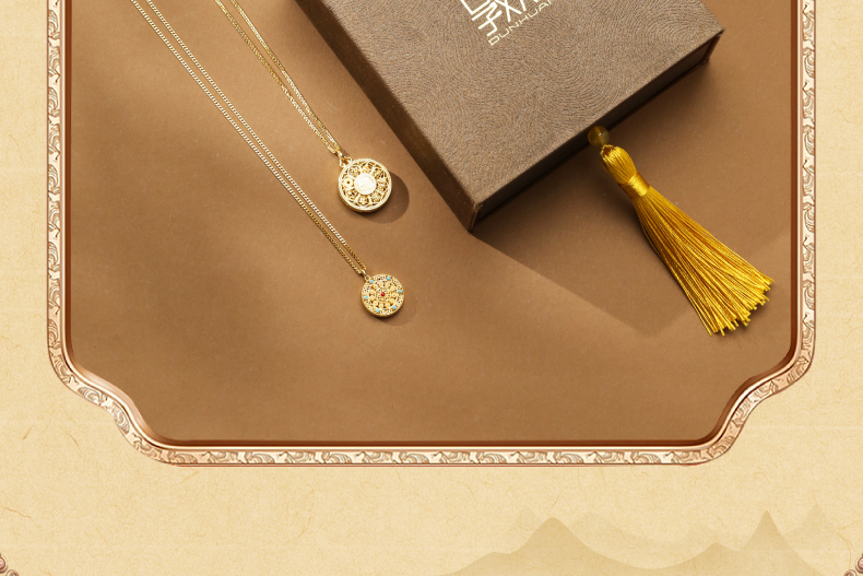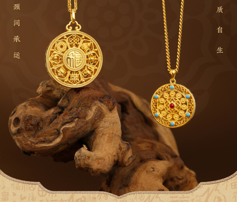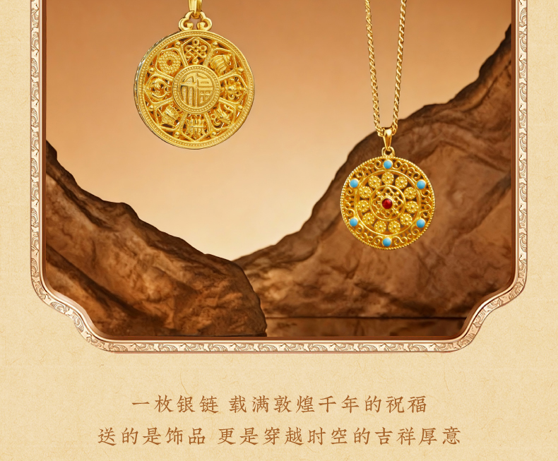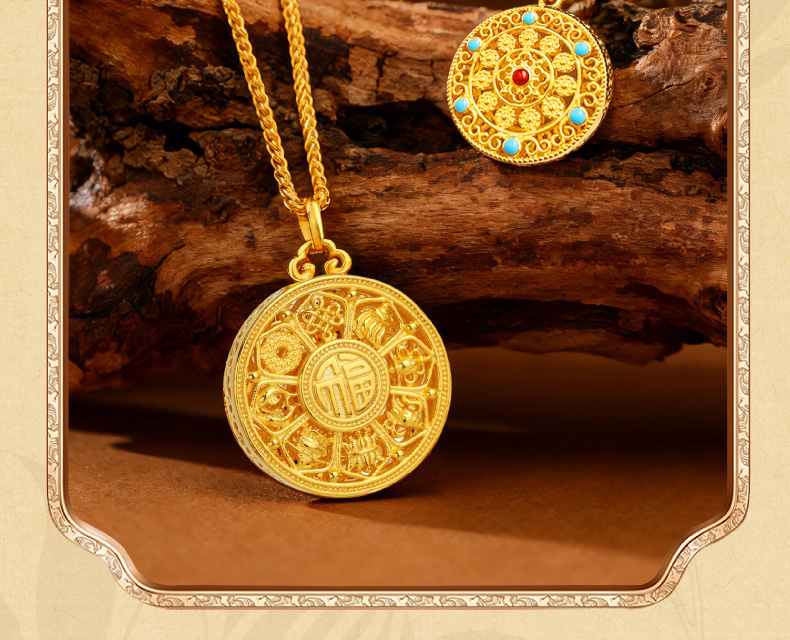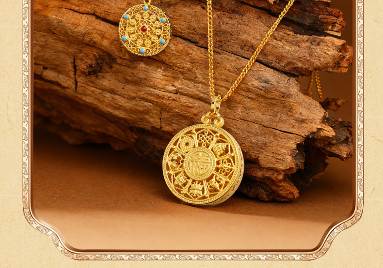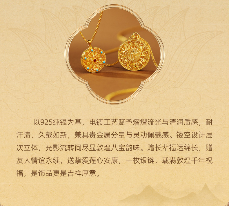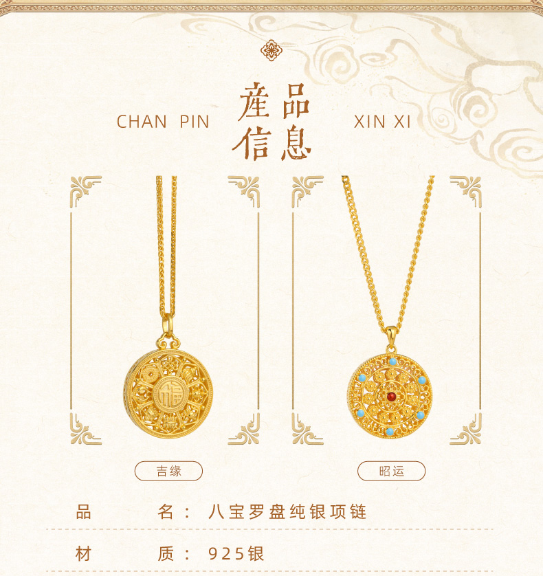 【八宝罗盘纯银项链】敦煌福泽s925纯银八宝罗盘项链 时来运转古法新中式吉祥莫桑石配饰