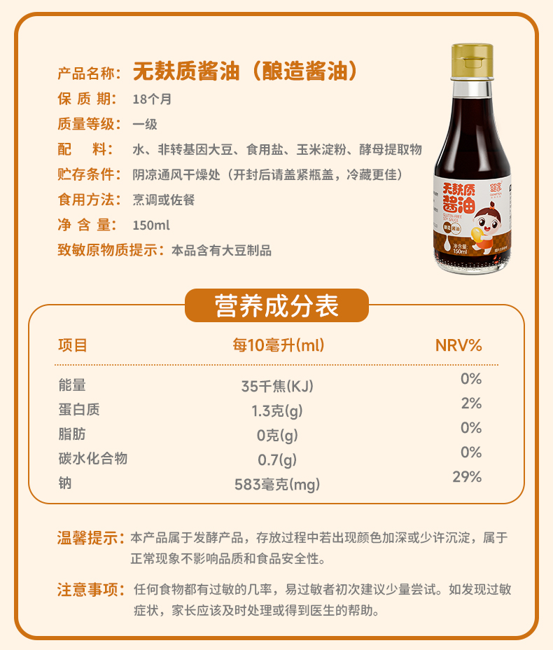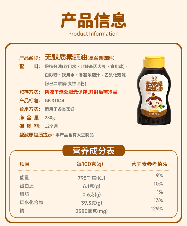 婴享无麸质素蚝油无添加小麦蚝油拌饭调味送婴幼儿敏宝辅食电子食谱