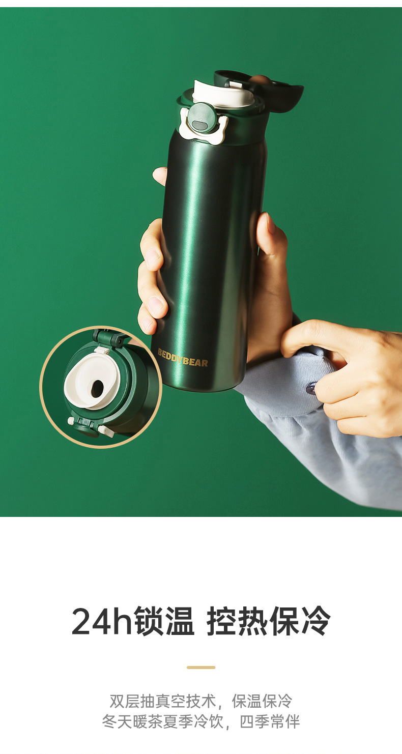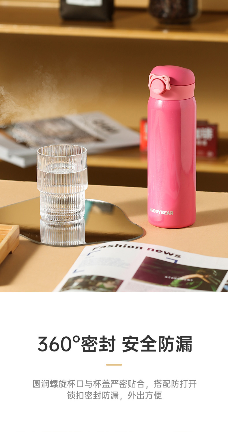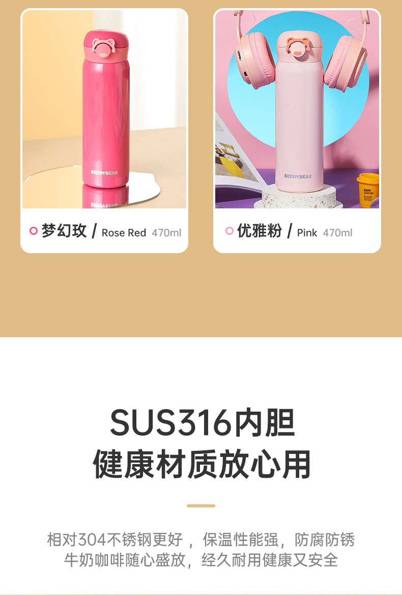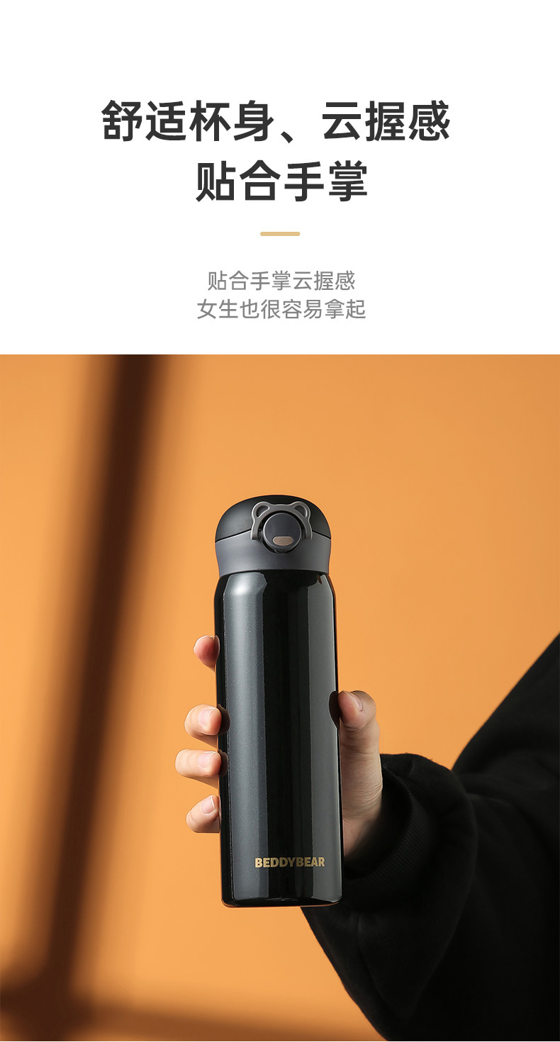 BeddyBear杯具熊 弹盖直饮保温杯316不锈钢男女便携水杯车载学生杯子 470ml