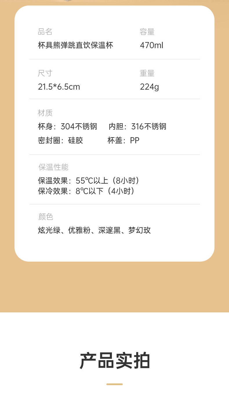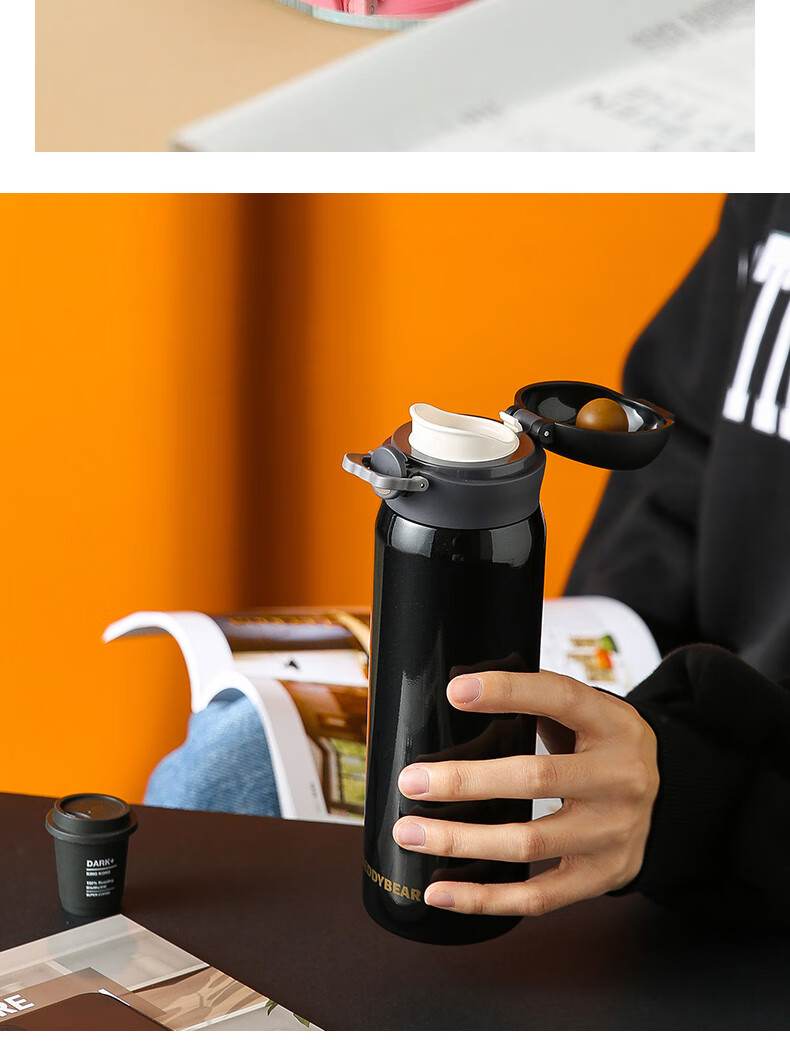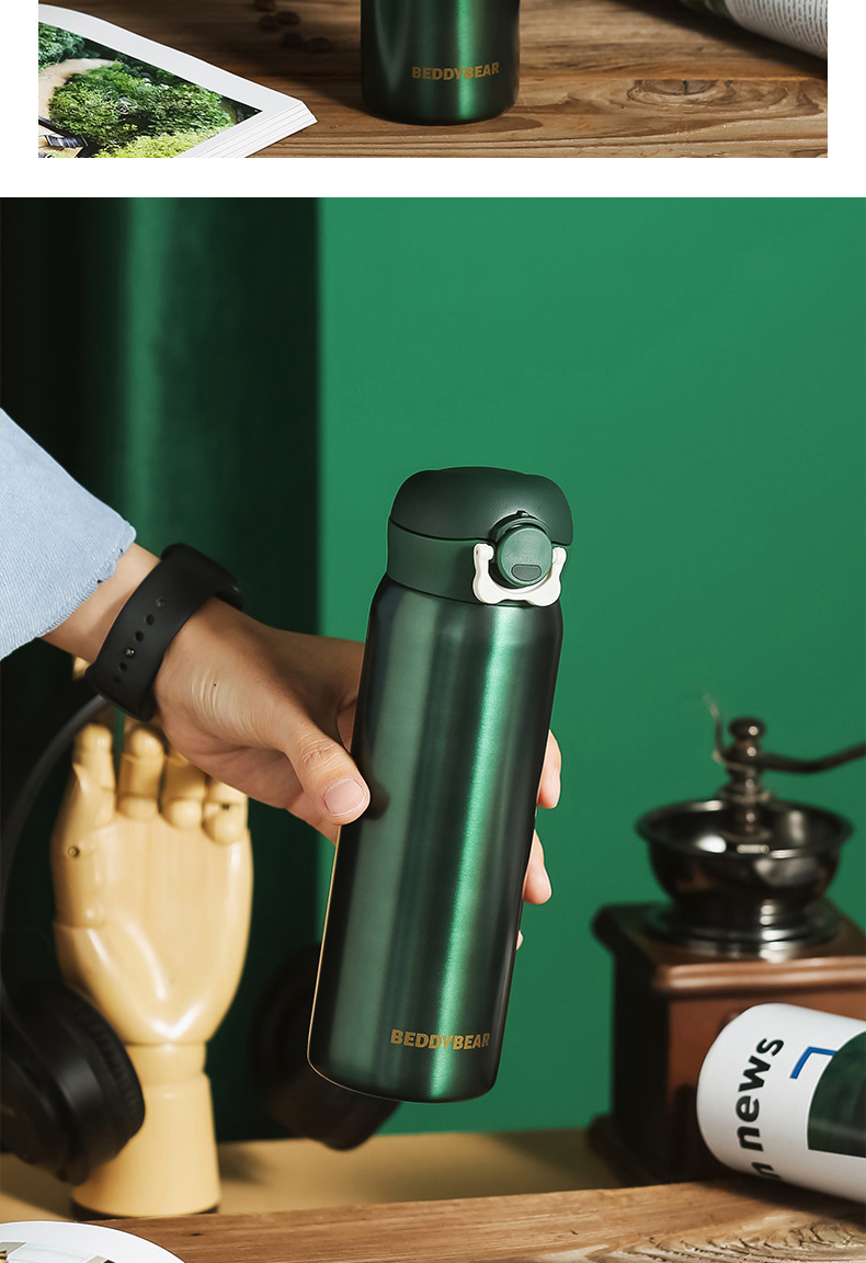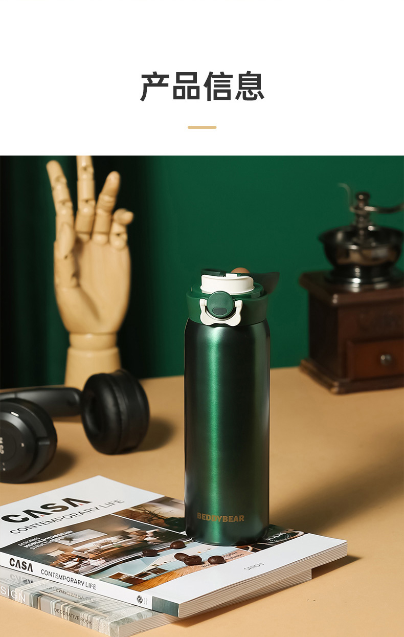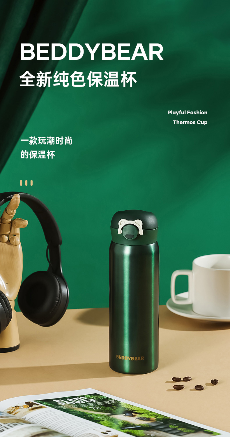 BeddyBear杯具熊 弹盖直饮保温杯316不锈钢男女便携水杯车载学生杯子 470ml