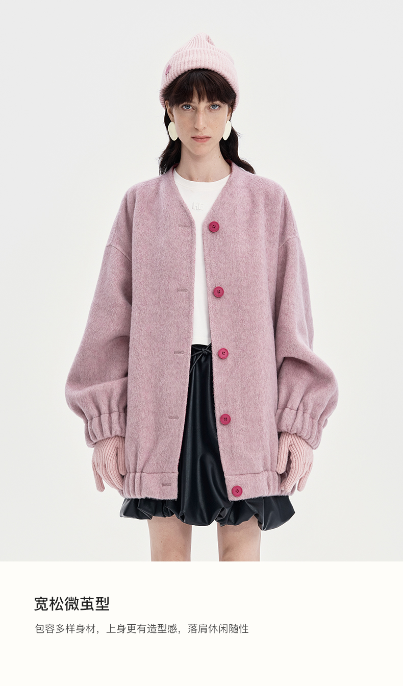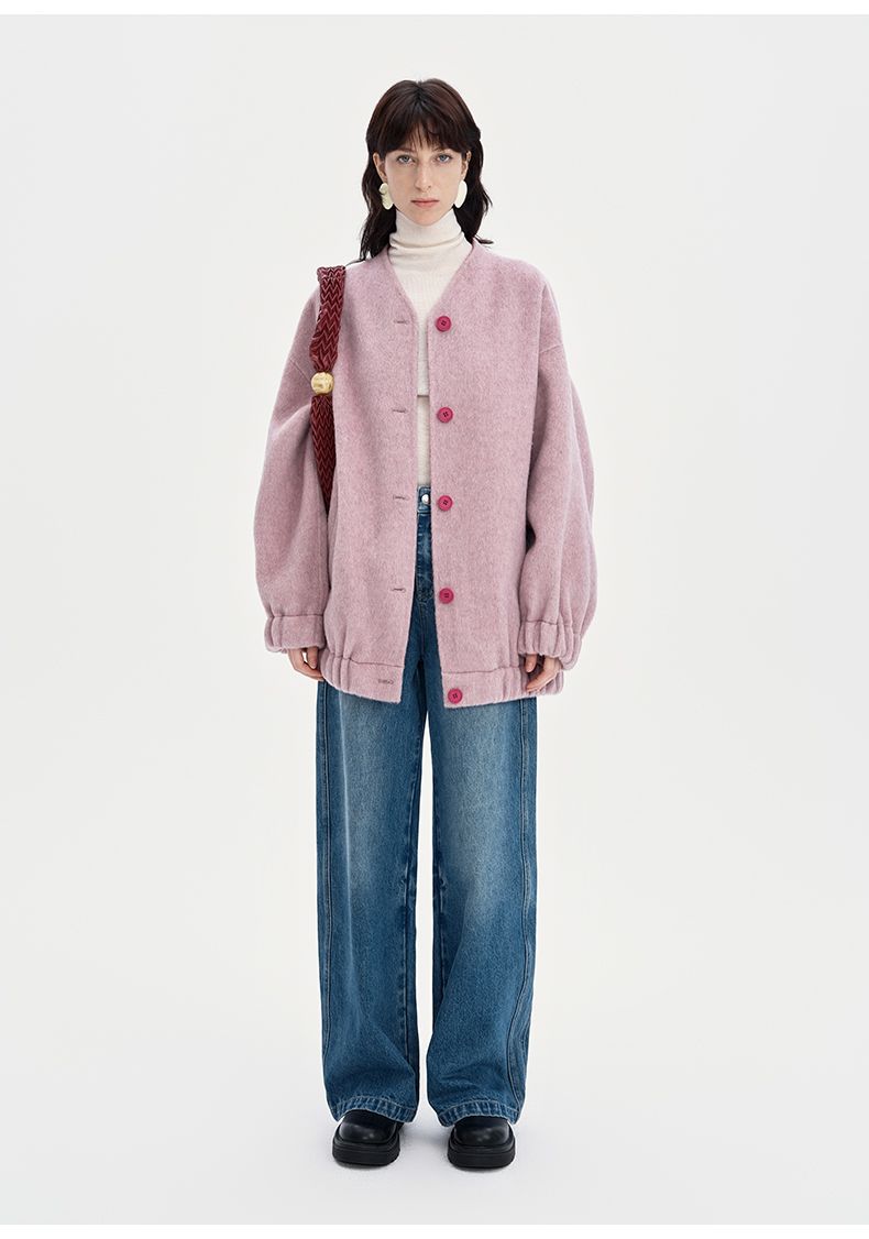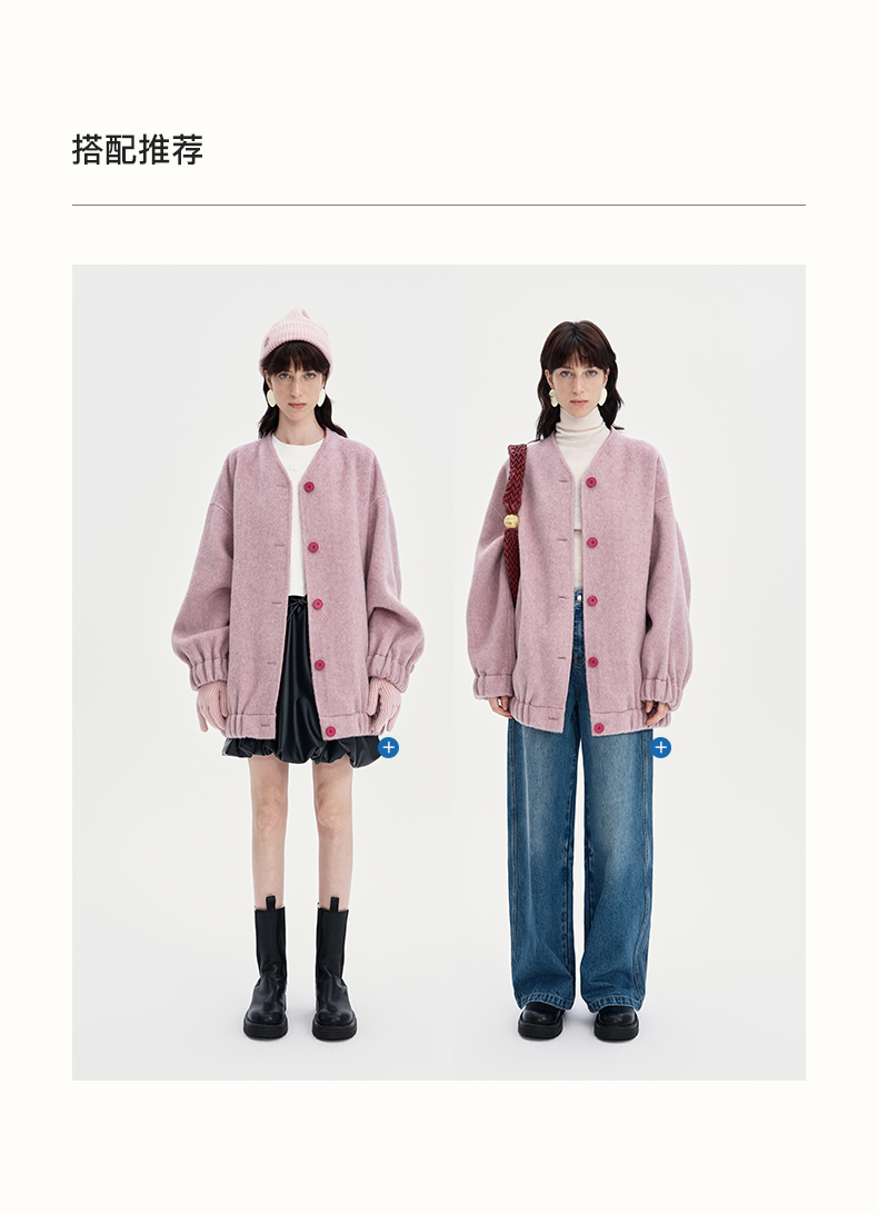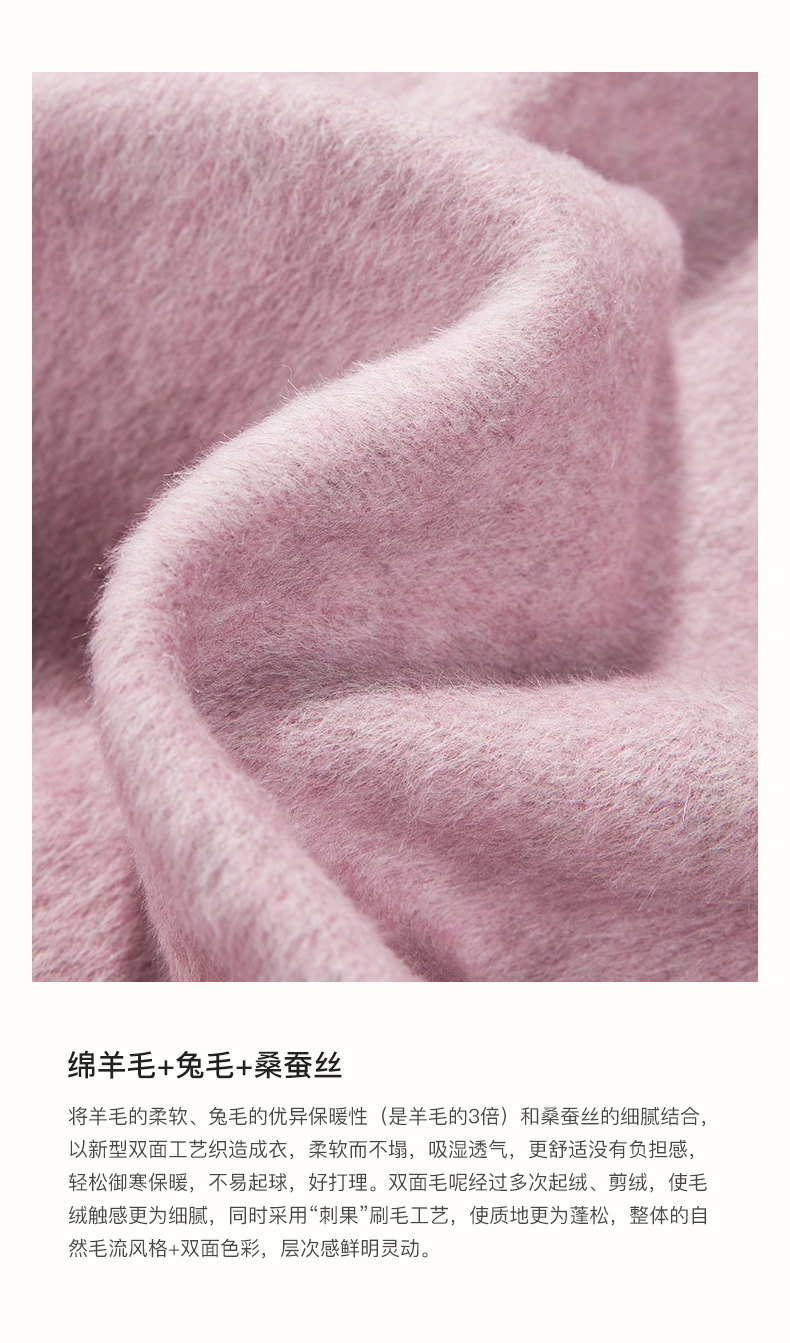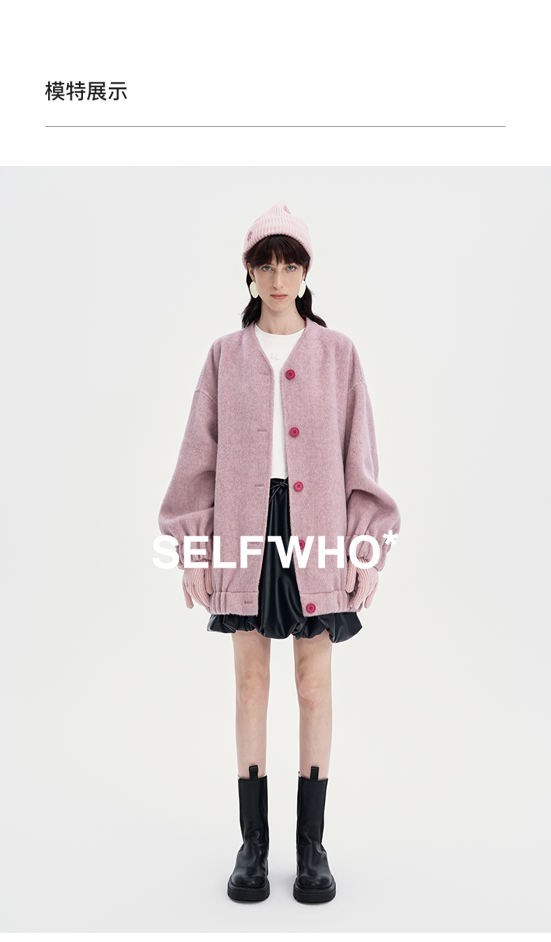 SELFWHO绵羊毛桑蚕丝混纺双面呢外套女秋冬2024新款宽松百搭上衣