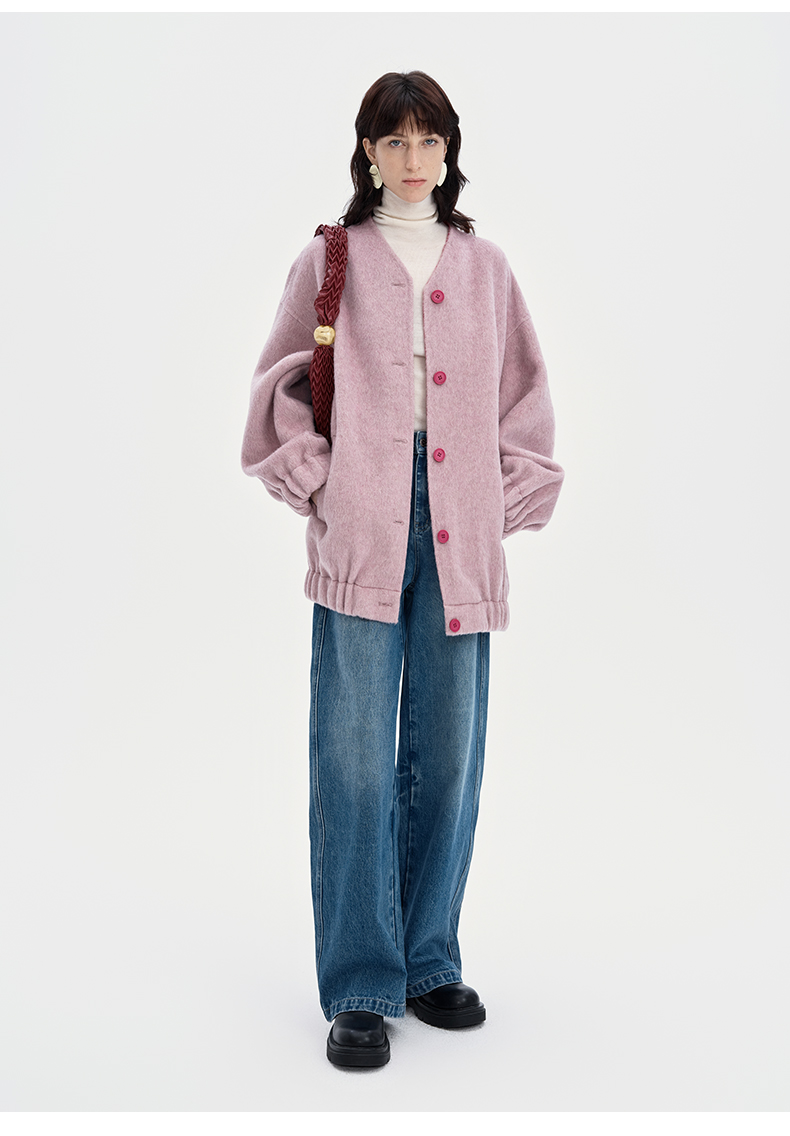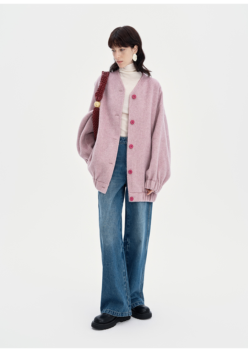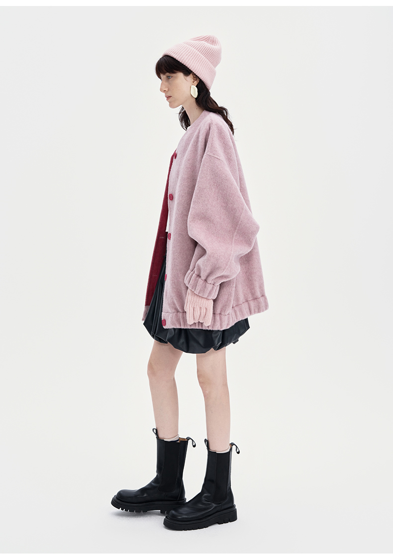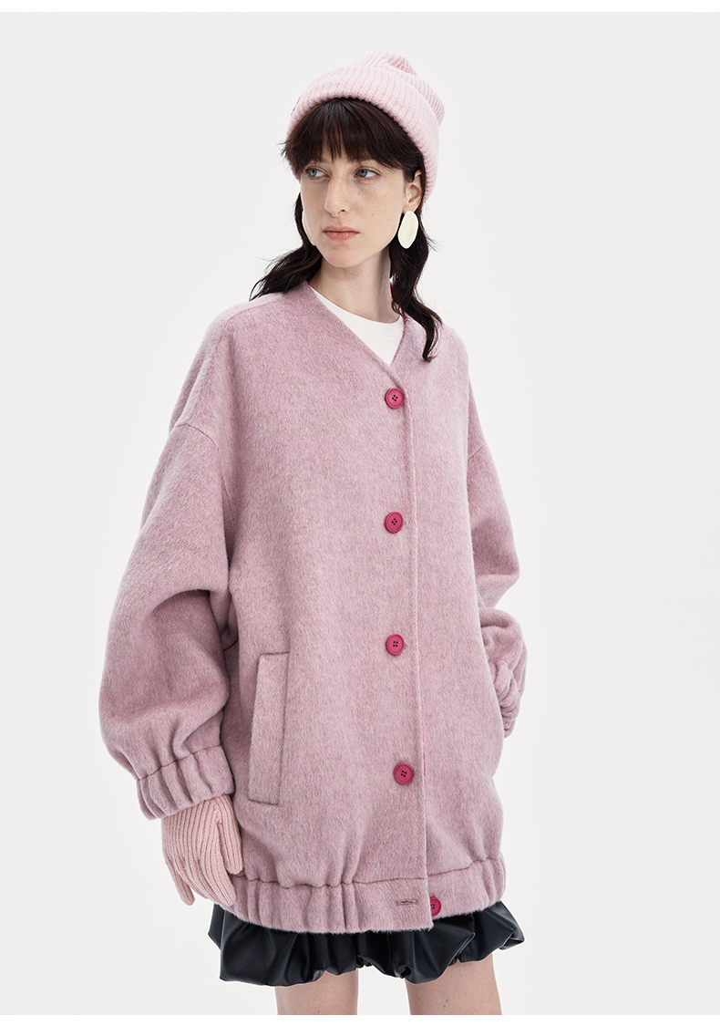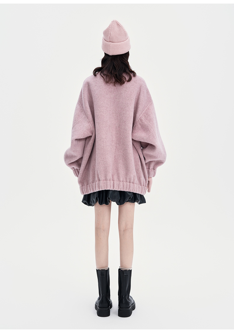 SELFWHO绵羊毛桑蚕丝混纺双面呢外套女秋冬2024新款宽松百搭上衣