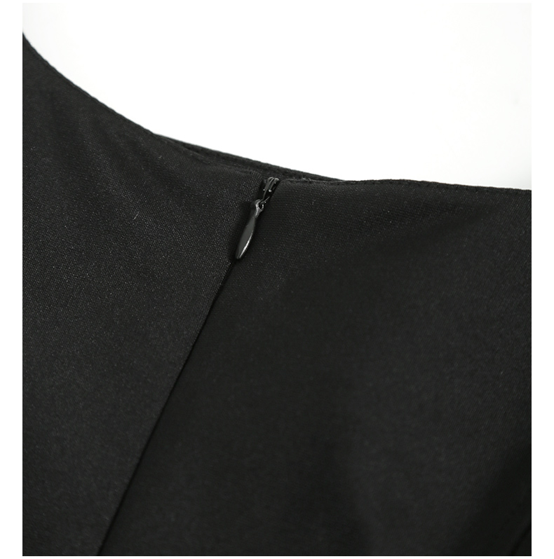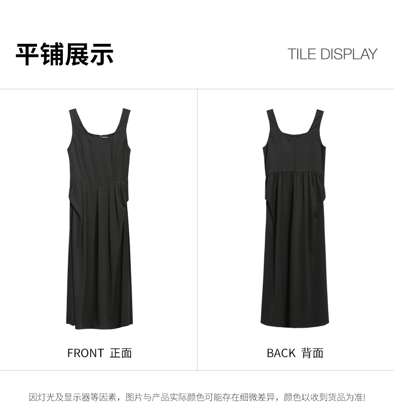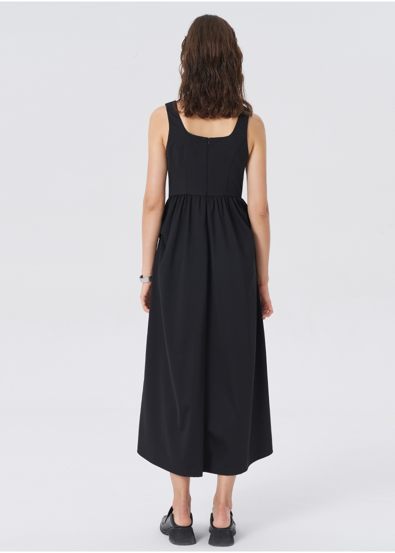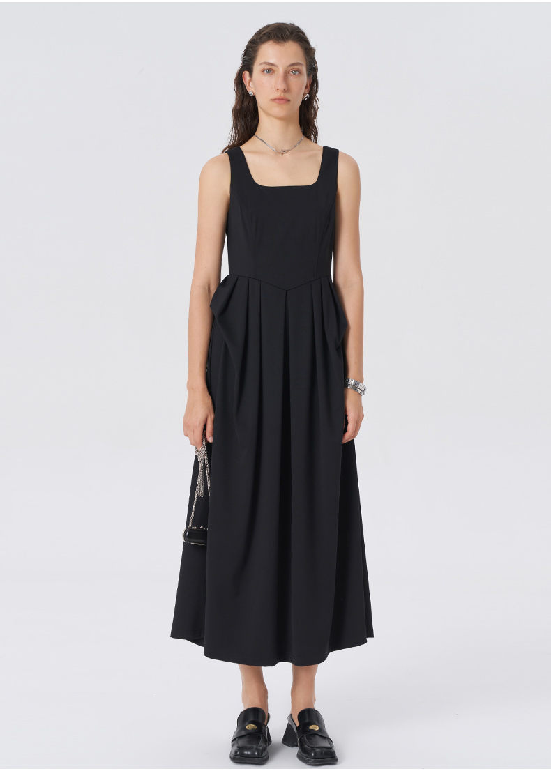 Self Who2023夏季高腰显瘦半身裙气质优雅方领小黑裙百褶连衣裙