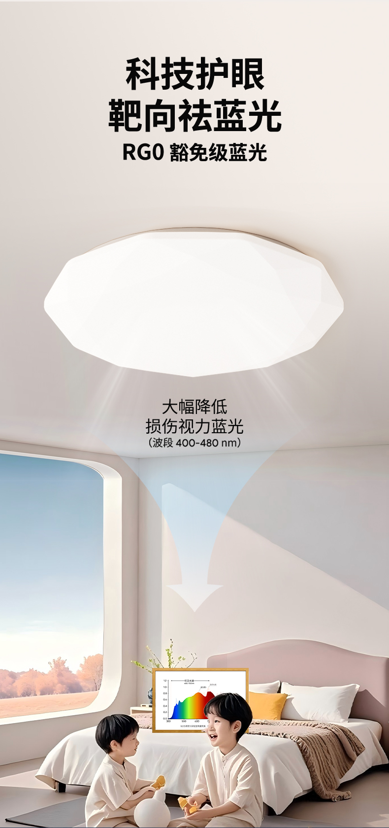 近停视界钻冕之光吸顶灯儿童房灯光改造首选
