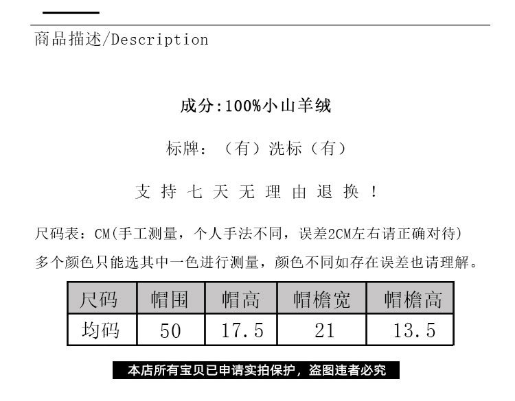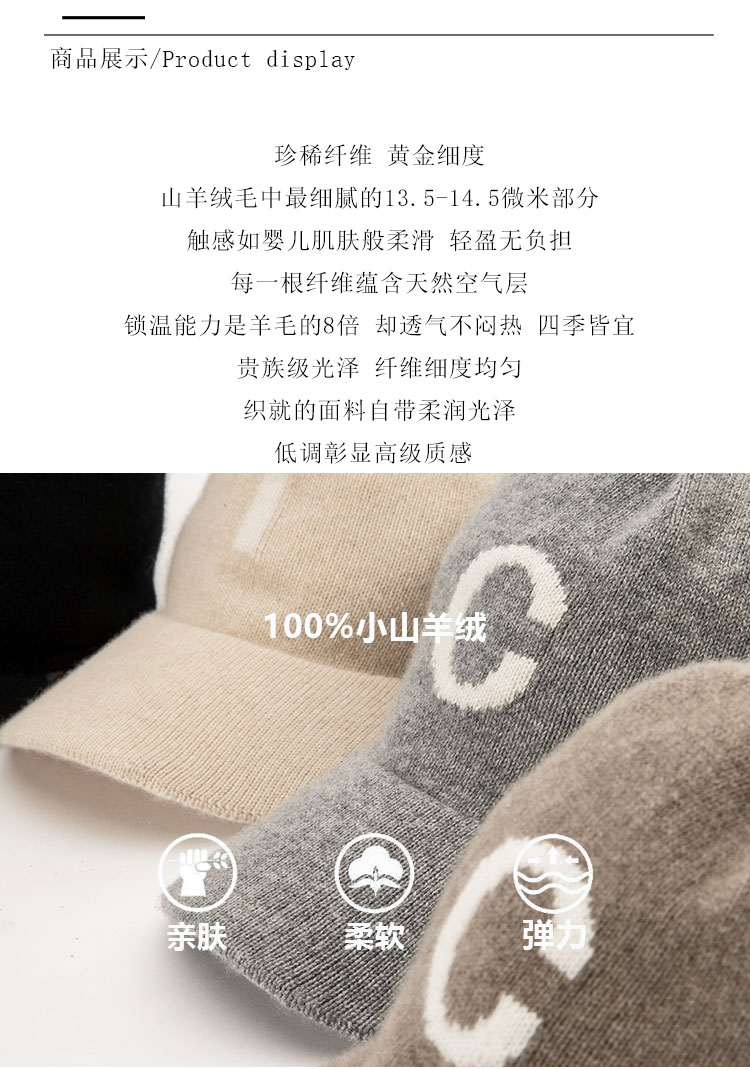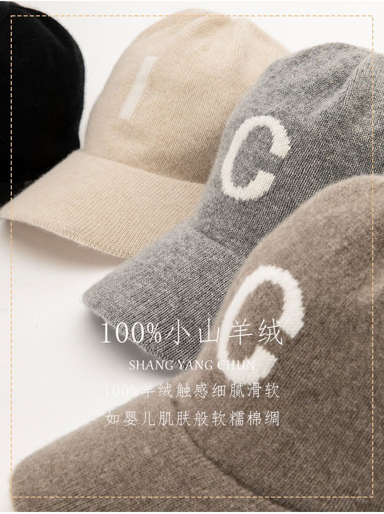 100%Baby小山羊绒~秀场同款秋冬新款针织棒球帽女BABY25147