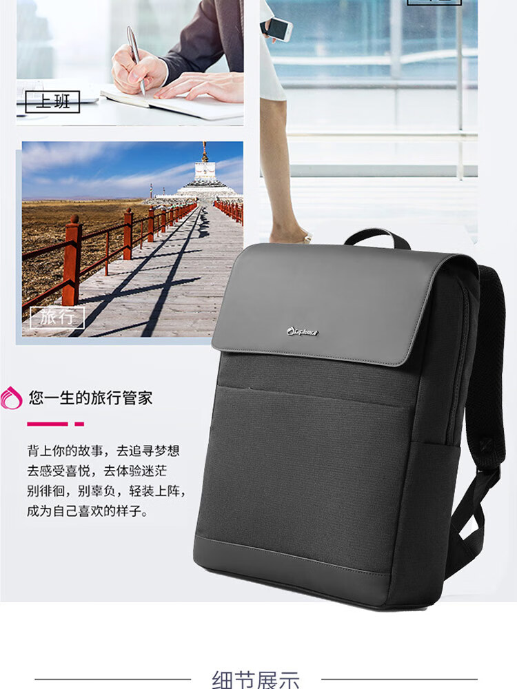 Diplomat外交官双肩包休闲男女商务出差旅行时尚背包HM-2712L系列 -1黑色-2灰色