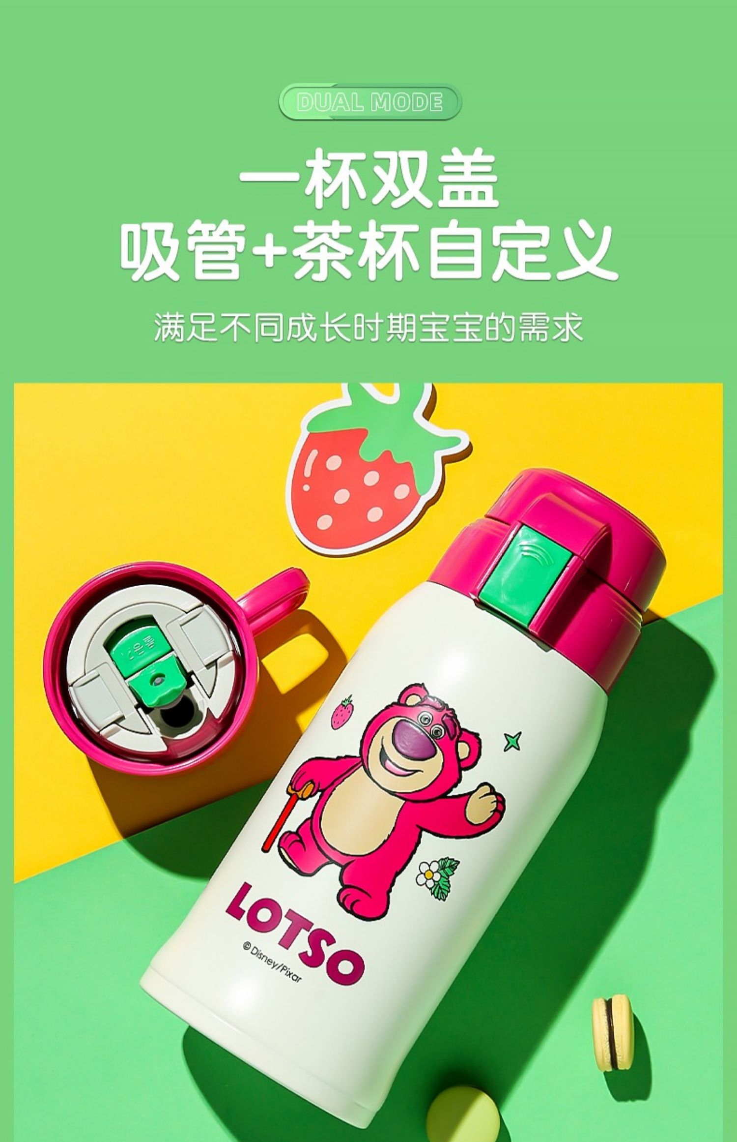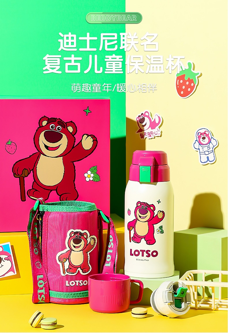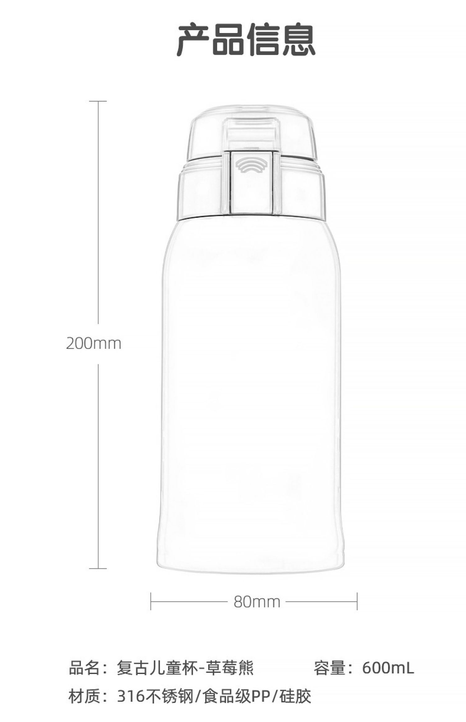 杯具熊复古儿童不锈钢保温杯草莓熊迪士尼吸管杯双盖水杯600ML RT103-600