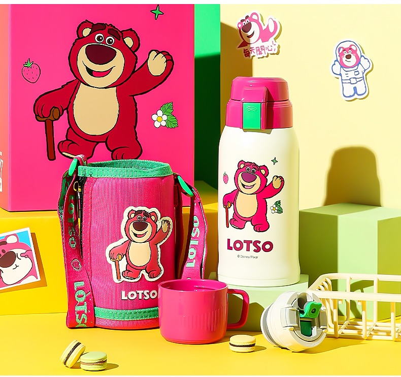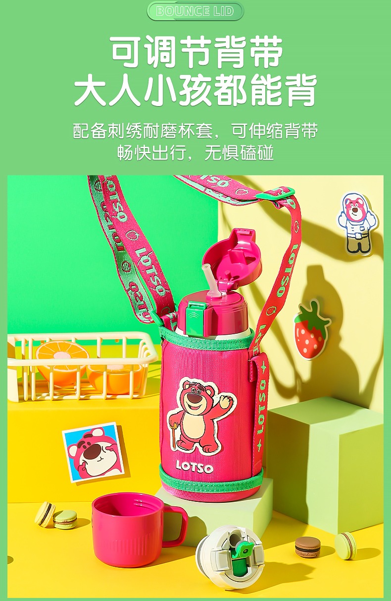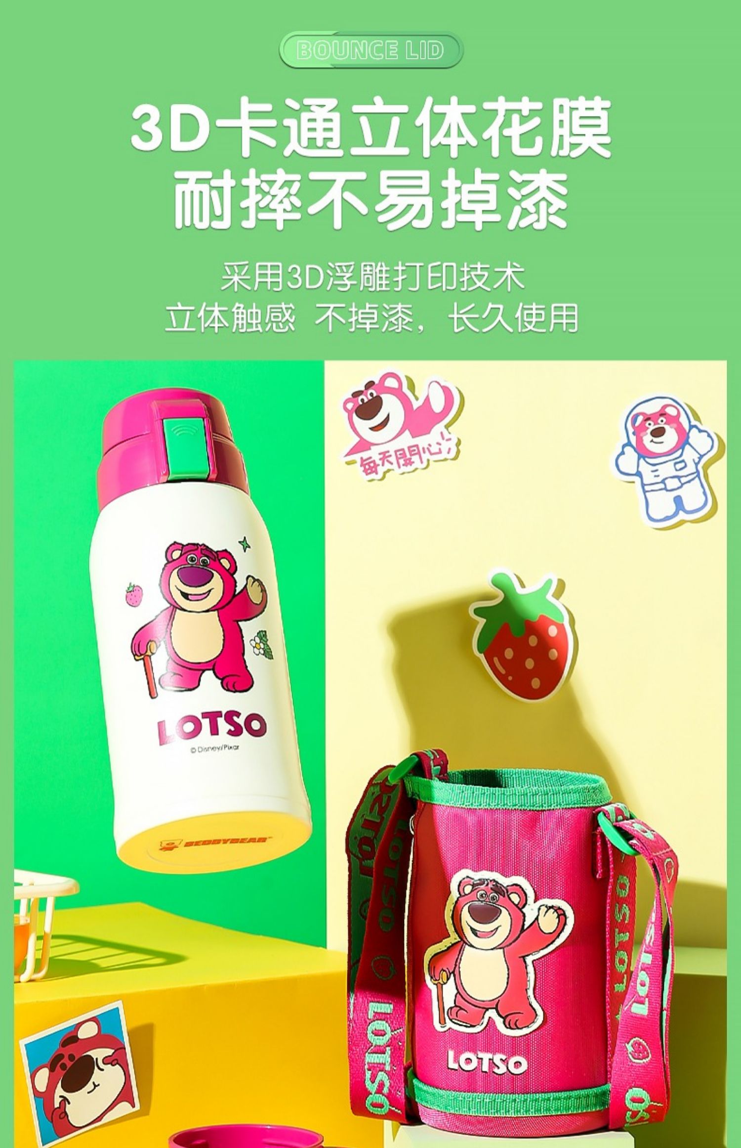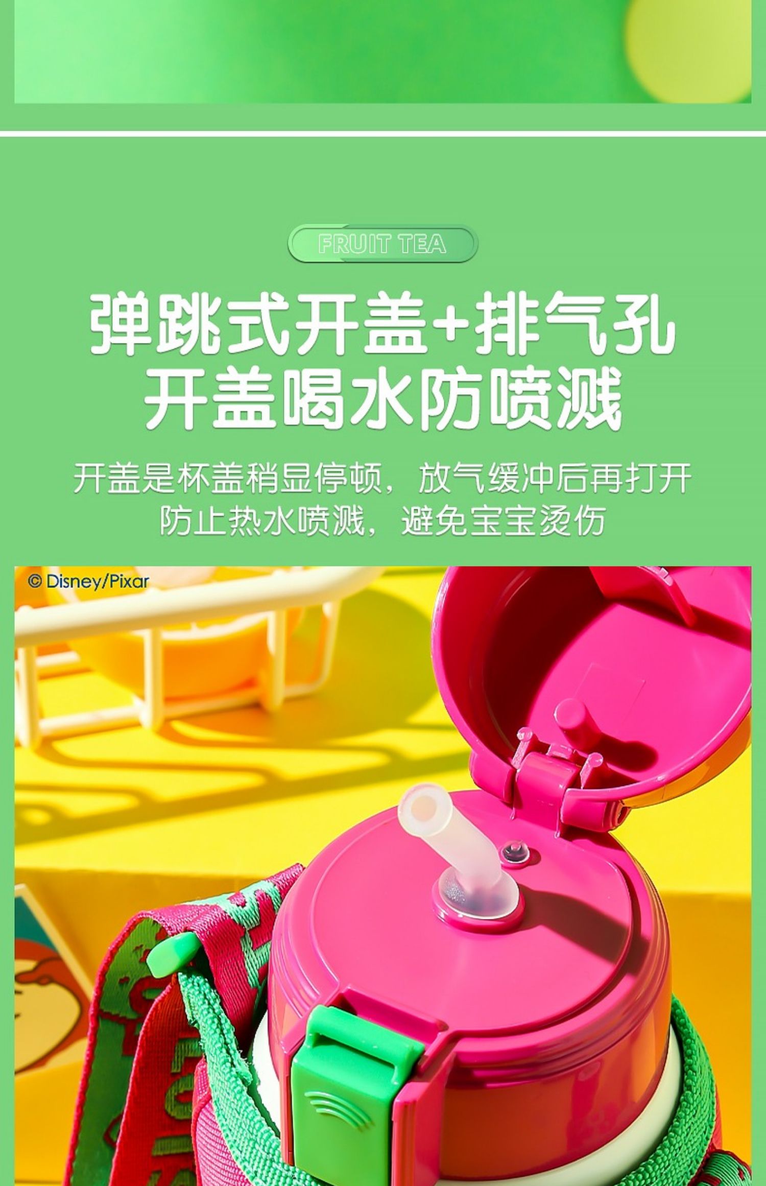 杯具熊复古儿童不锈钢保温杯草莓熊迪士尼吸管杯双盖水杯600ML RT103-600