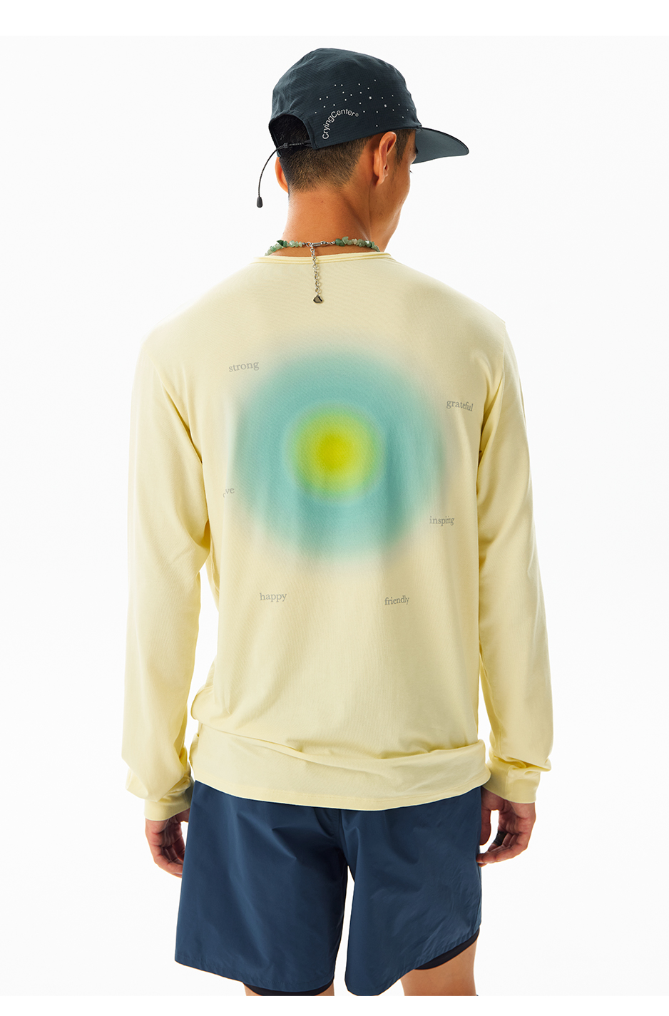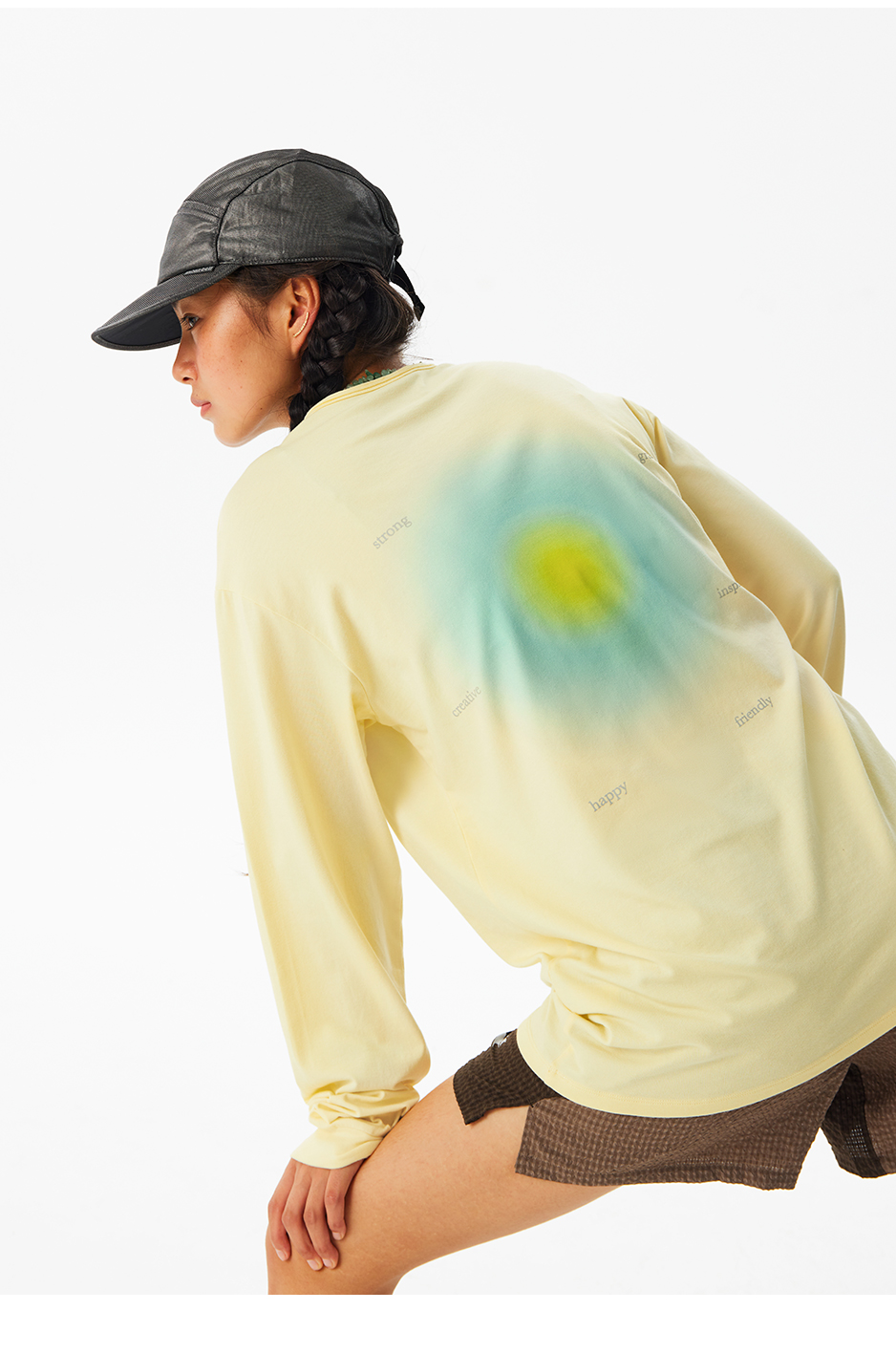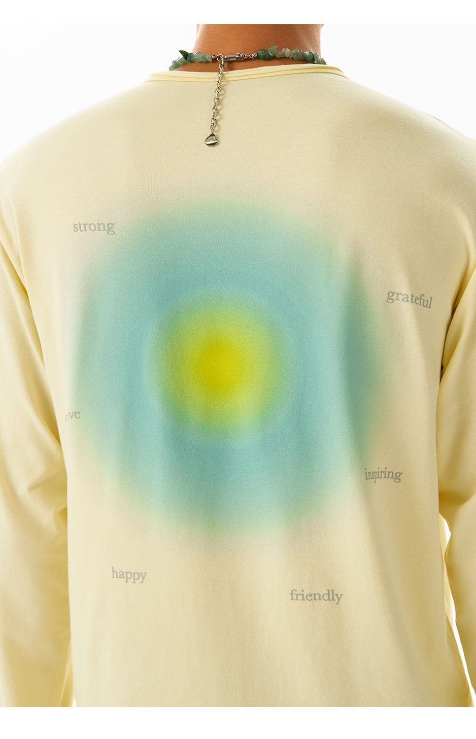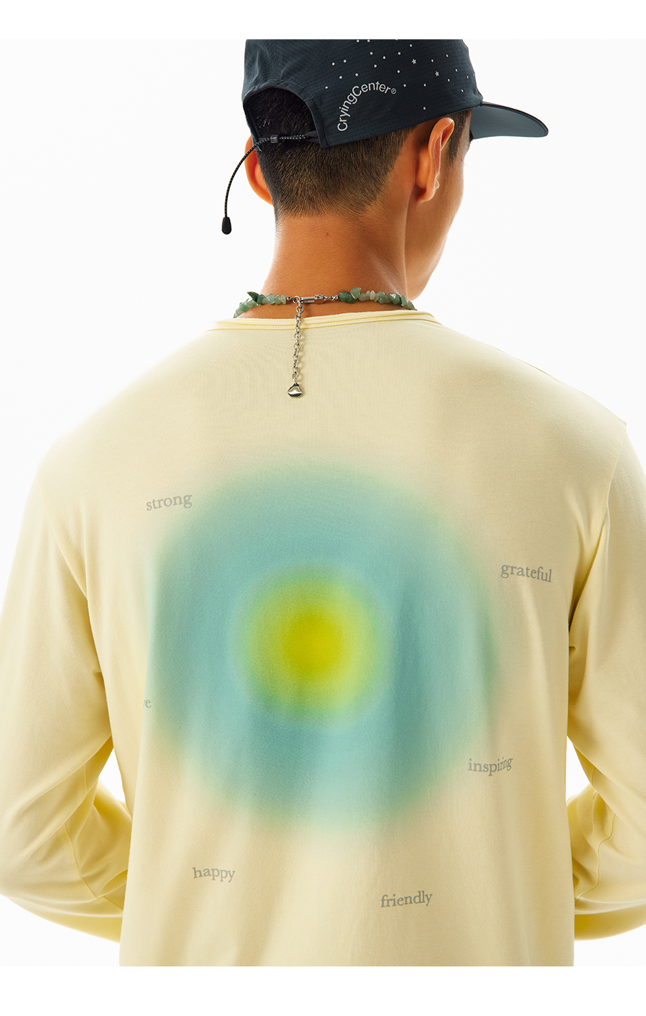 CryingCenter 渐变鹅黄浅蓝绿光环能量长袖运动休闲男女同款T恤
