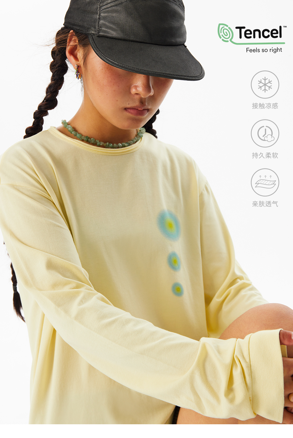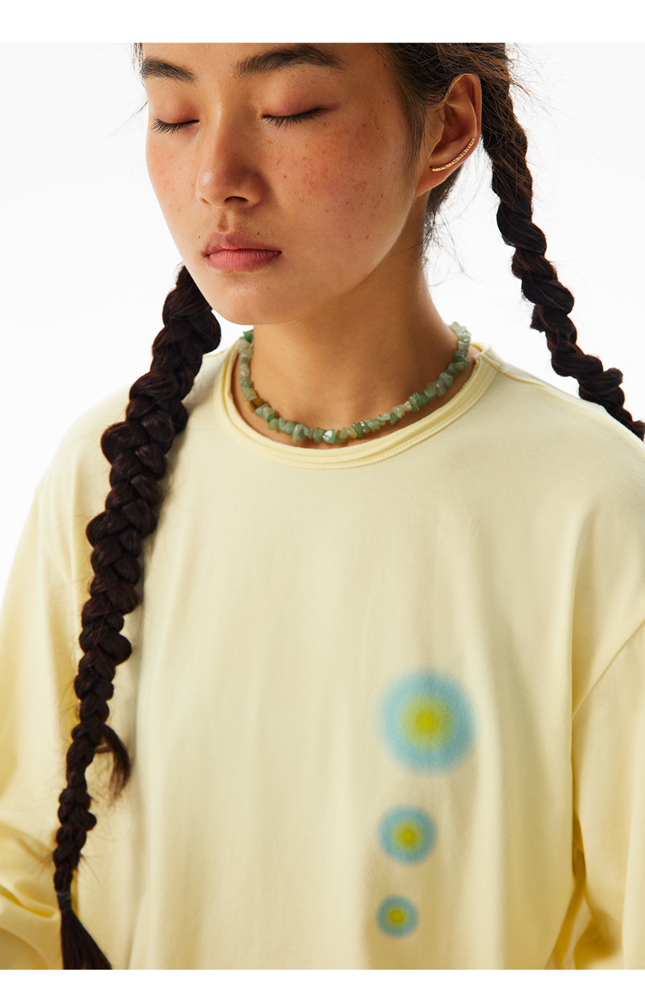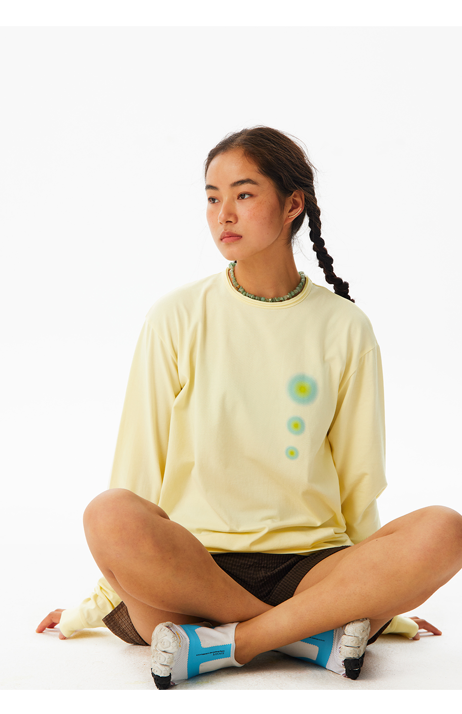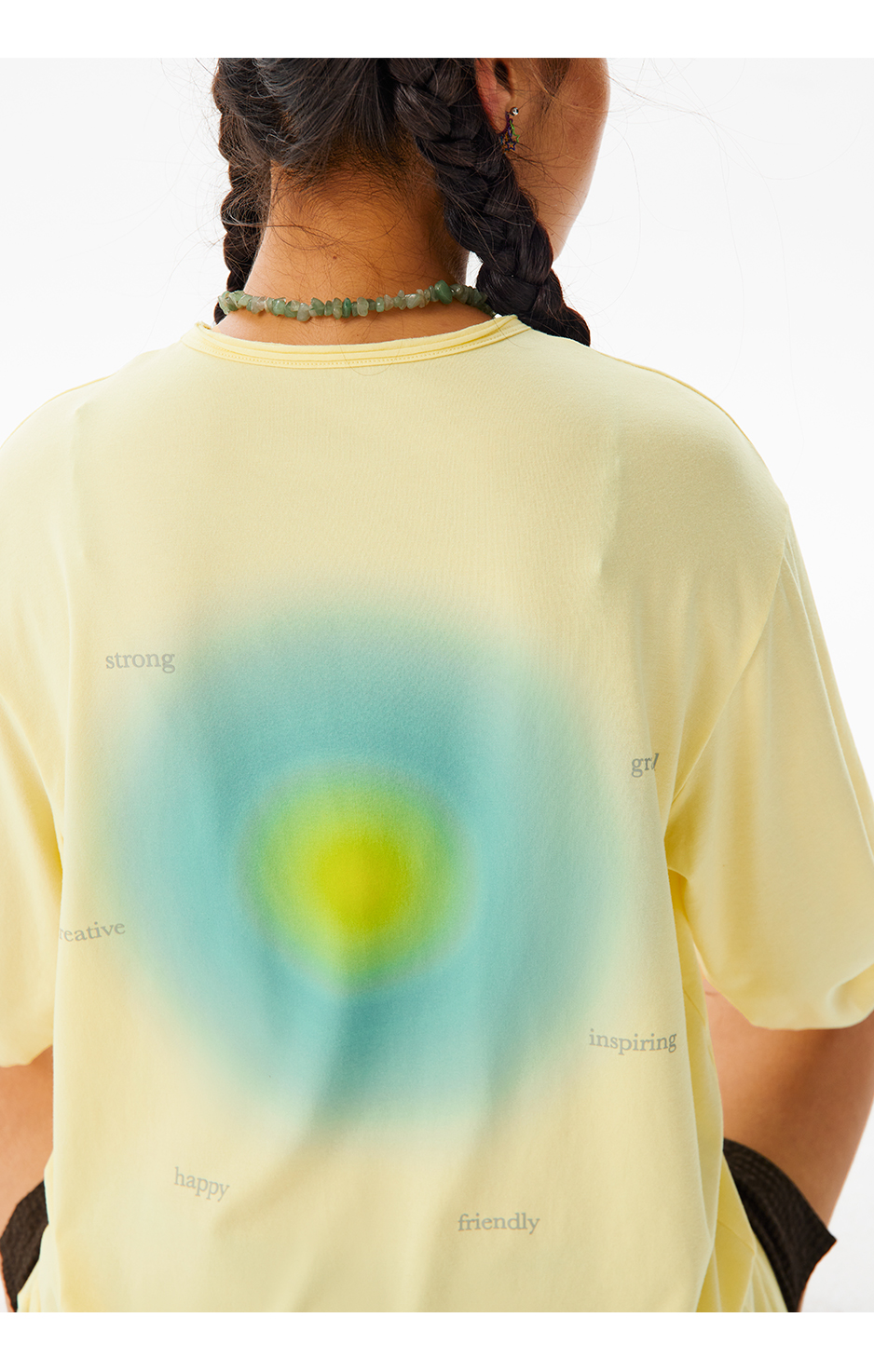 CryingCenter 渐变鹅黄浅蓝绿光环能量长袖运动休闲男女同款T恤