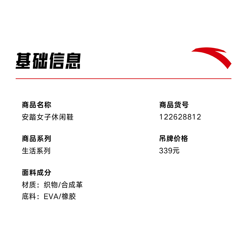 安踏小千禧女子休闲鞋 122628812
