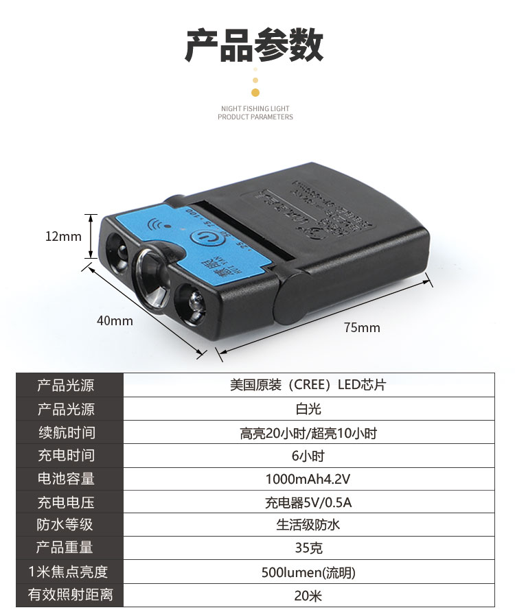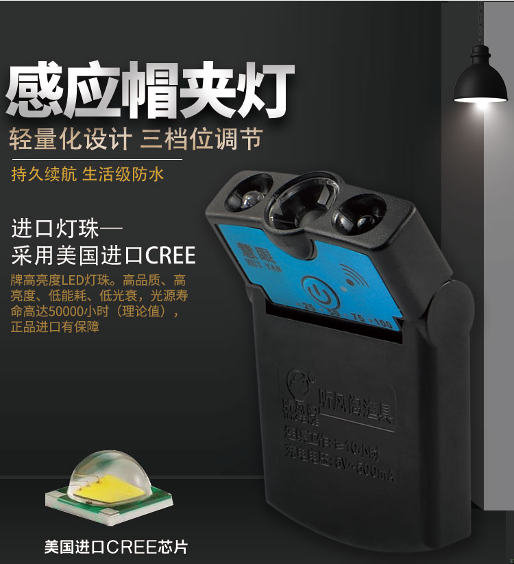 听风阁慧眼LED感应头灯上饵灯超亮夹帽灯帽檐灯夜钓超长续航充电