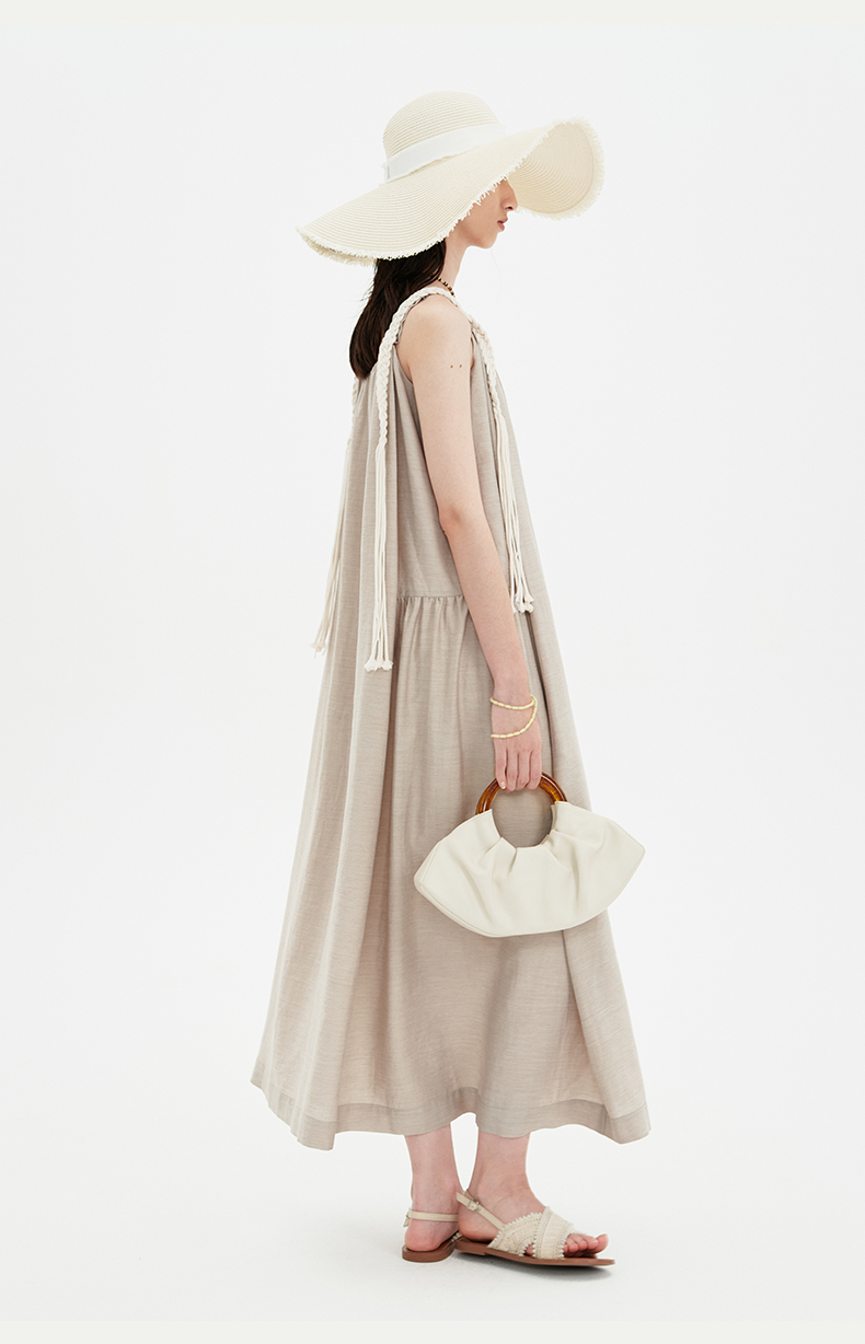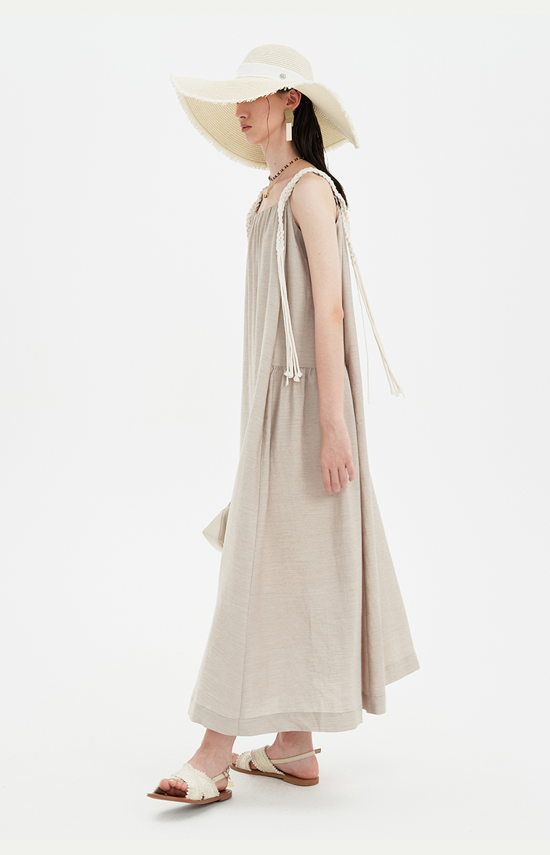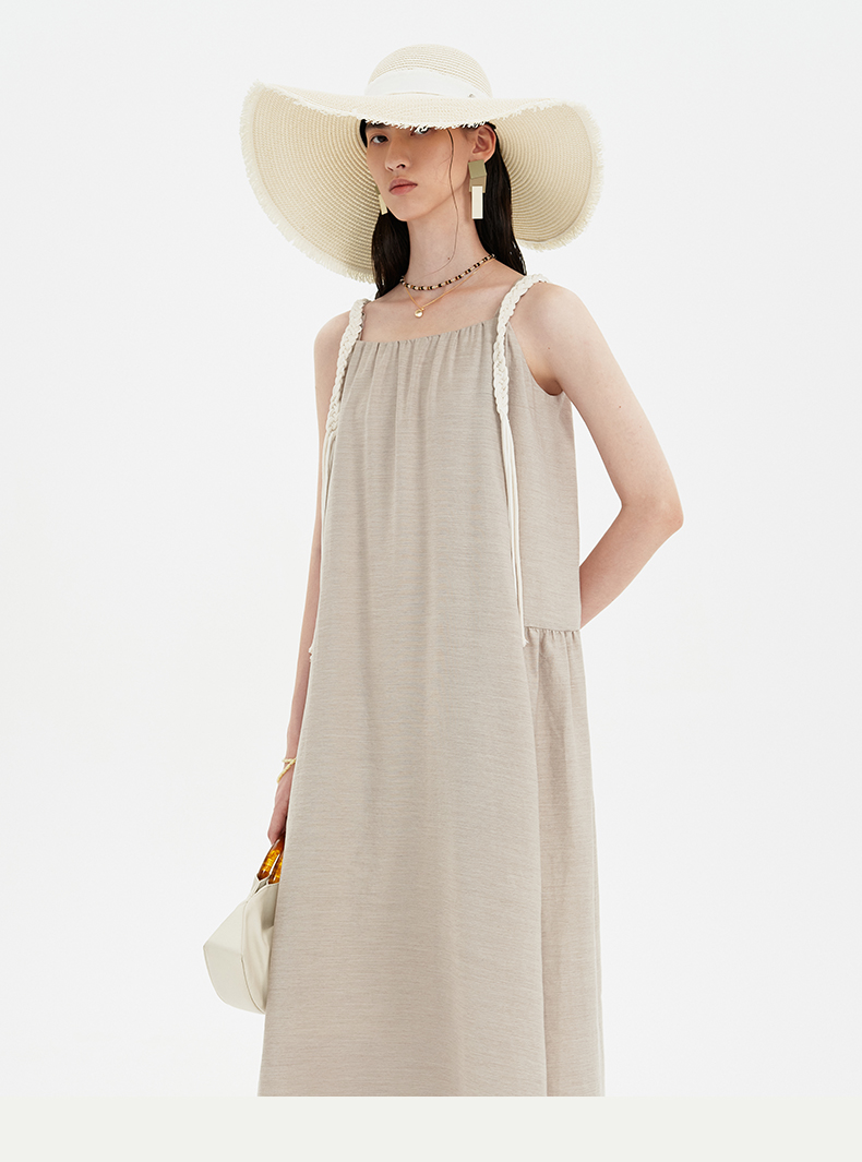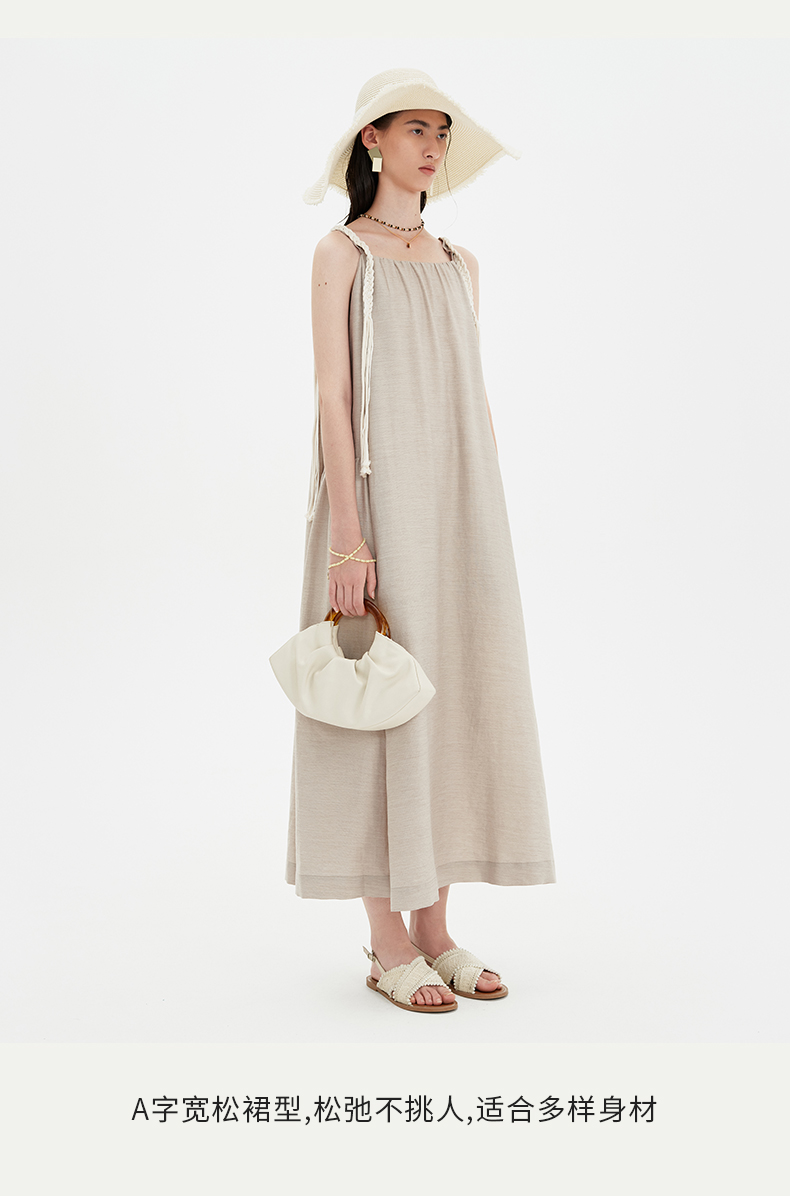 SELFWHO棉混纺宽松吊带连衣裙女2024夏季新款休闲垂坠感气质裙子