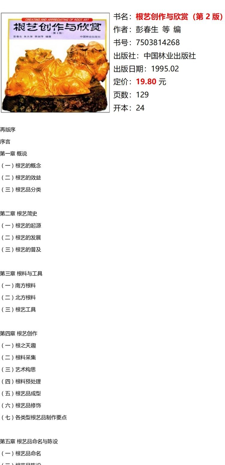 根艺创作与欣赏(第2版)1426 根艺简史 根料 工具 根艺创作 根艺品命名与陈设 各地根艺赏析 根艺美学 中国林业出版社 正版畅销书