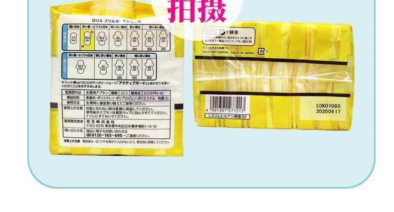 【3包装】KAO花王 乐而雅S系列薄日用卫生巾护垫 20.5cm*32片/包