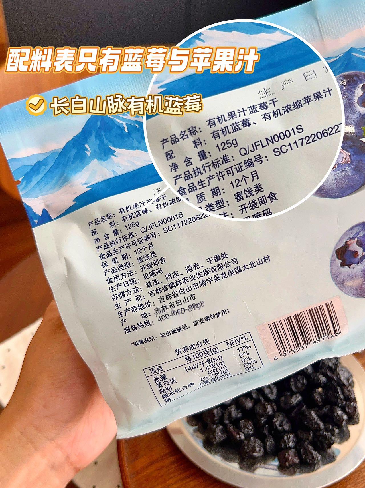 莓日悠果有机果汁蓝莓干125g 独立小包装
