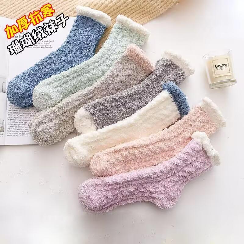 【珊瑚绒加厚袜】【产后毛巾袜月子袜】女冬季家居袜毛绒加厚产后毛巾袜月子袜秋冬睡眠袜
