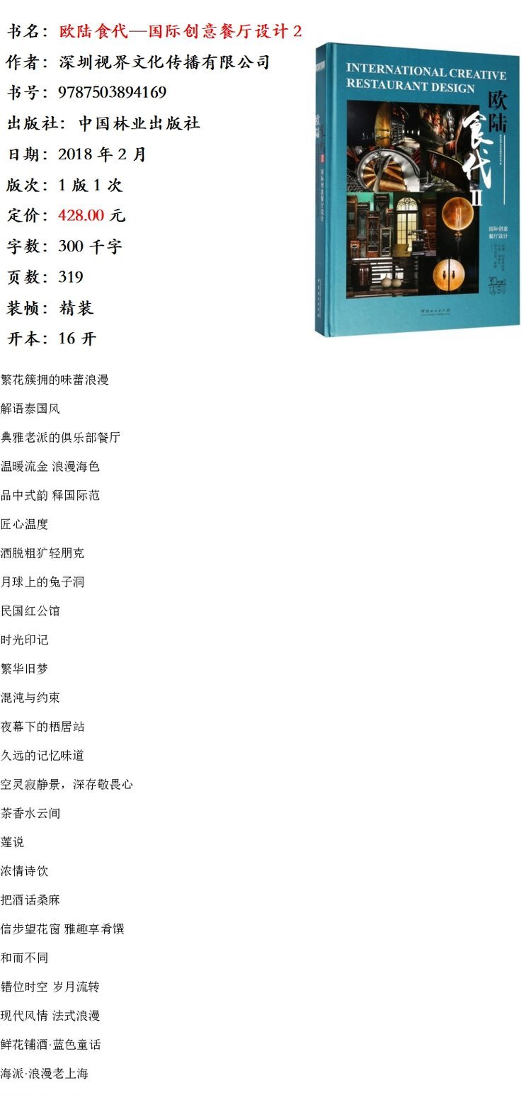 欧陆食代 国际创意餐厅设计2II 9416现代风情法式浪漫主图餐厅设计空间布局餐饮空间规划色彩搭配灯光配饰 室内装饰装修设计案例书