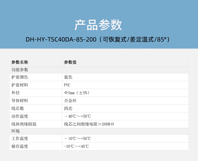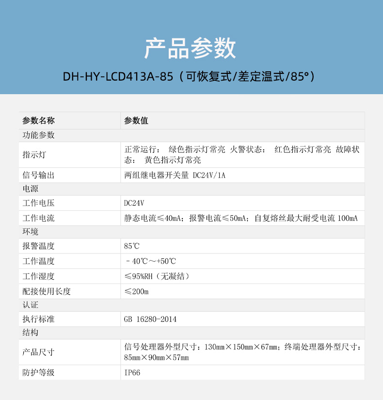 缆式线型感温火灾探测器+感温电缆(可恢复式/差定温式/85°)DH-HY-LCD413A-85