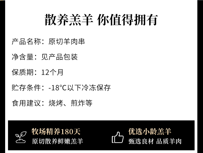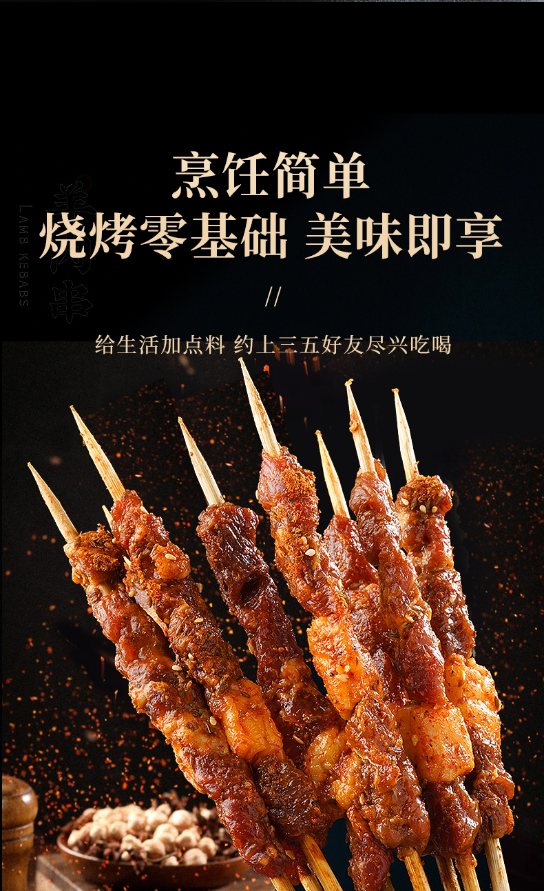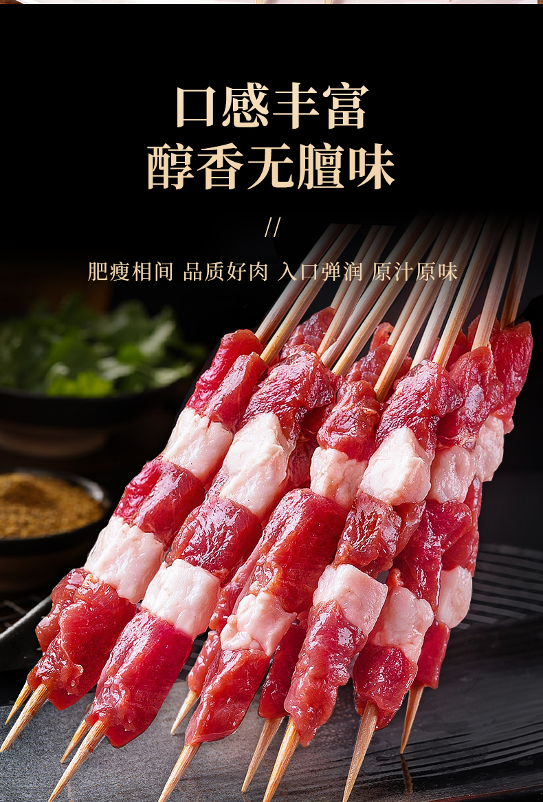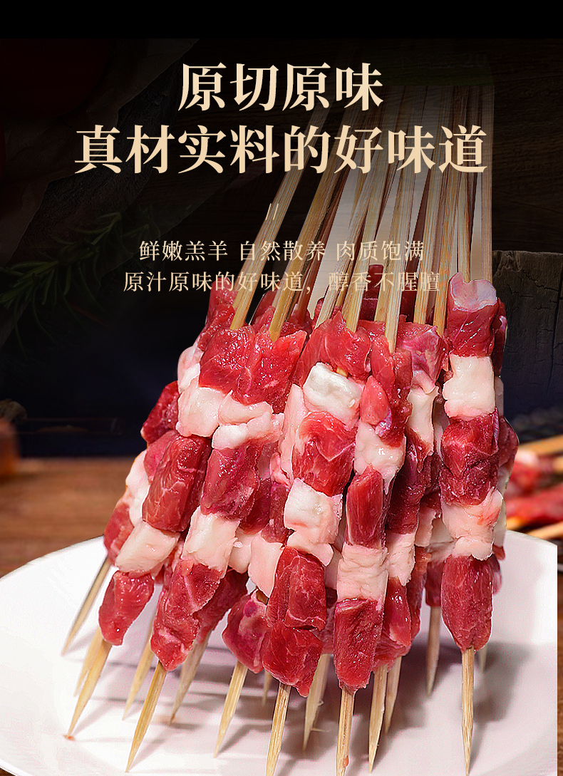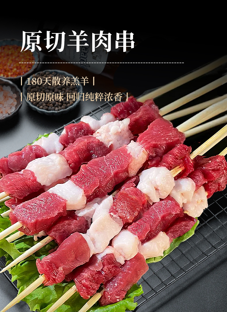 原切羊肉串 200g*5袋(共50串)家庭烧烤空气炸锅食材