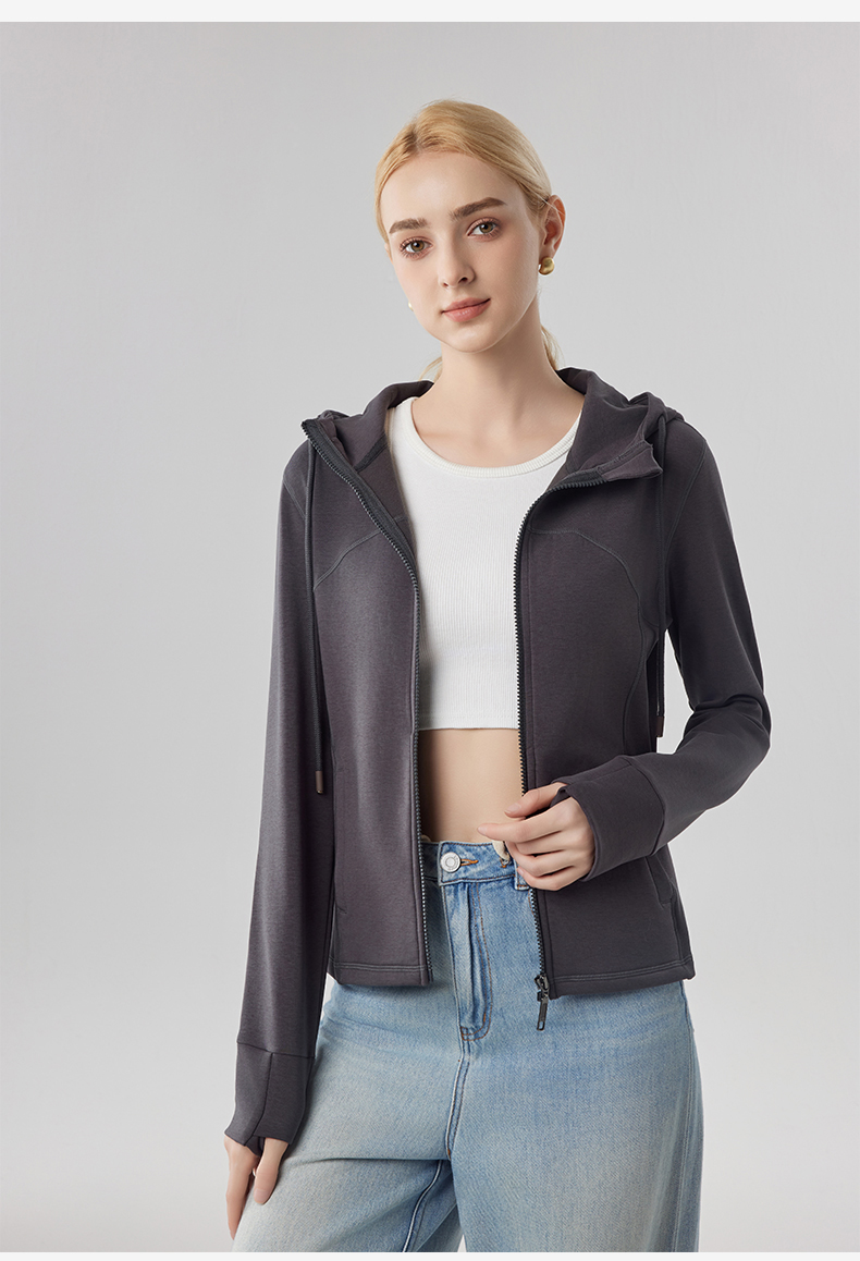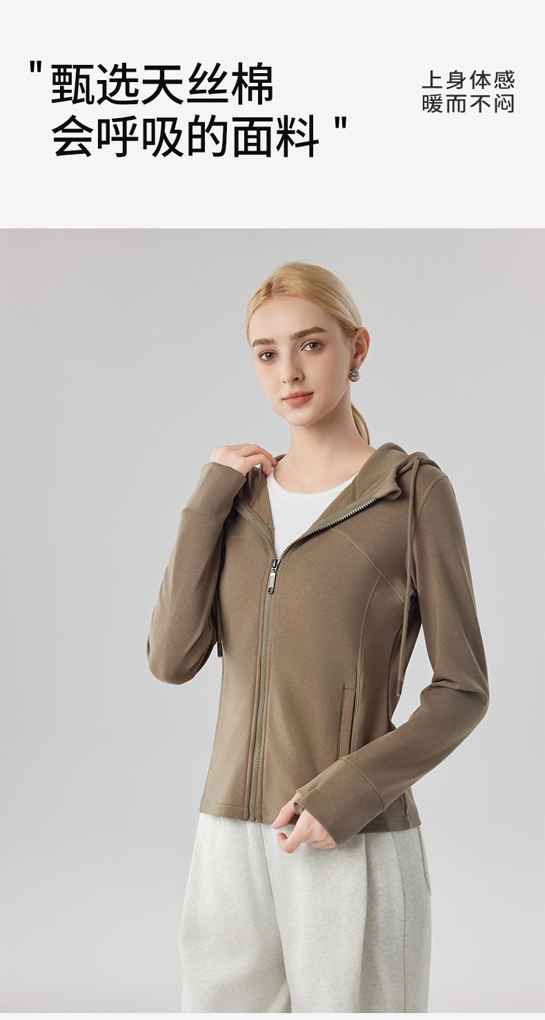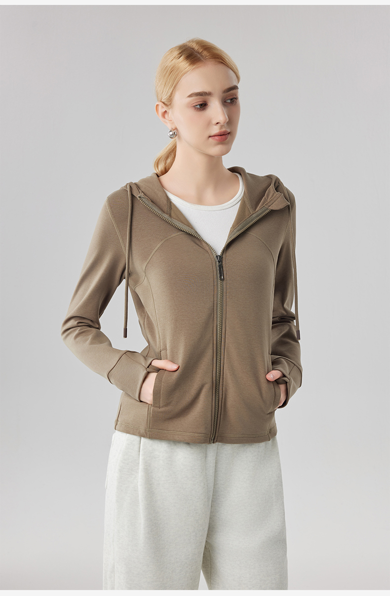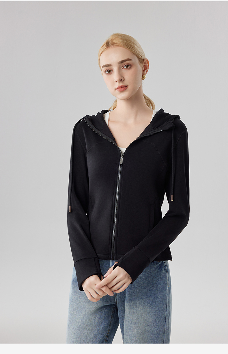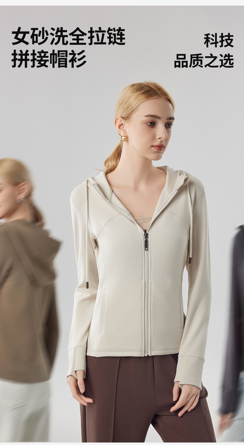 【双节特惠】憨棉匠女士砂洗全拉链拼接帽衫W11M2