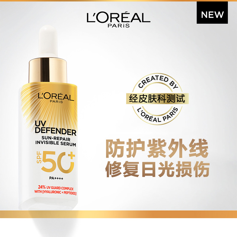 优选丨【保税仓】欧莱雅 小金管UV防晒霜隔离精华30ML 抗皱级胜肽玻尿酸