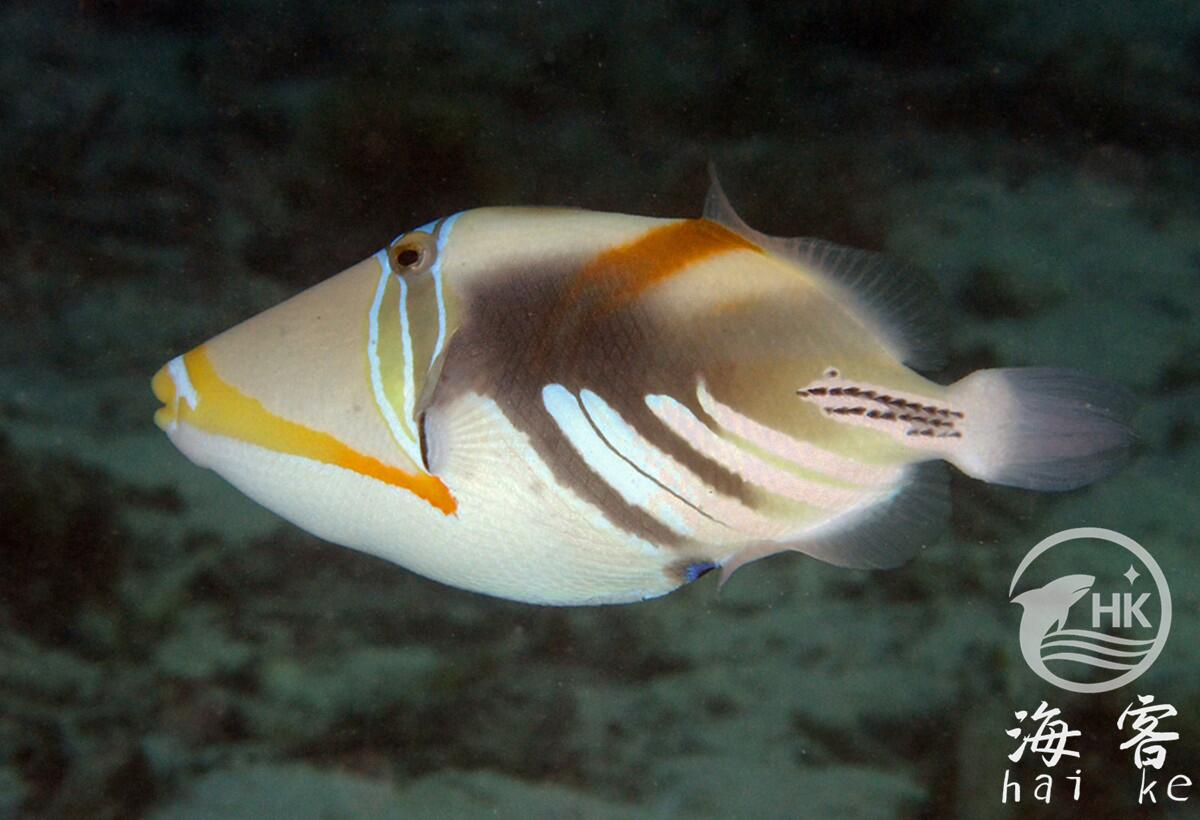 有一个古怪,像画上去的外表。茶色的身体暗色的斜纹,头部是蓝色及黑色条纹,黄色条纹从嘴部延伸到腮部。