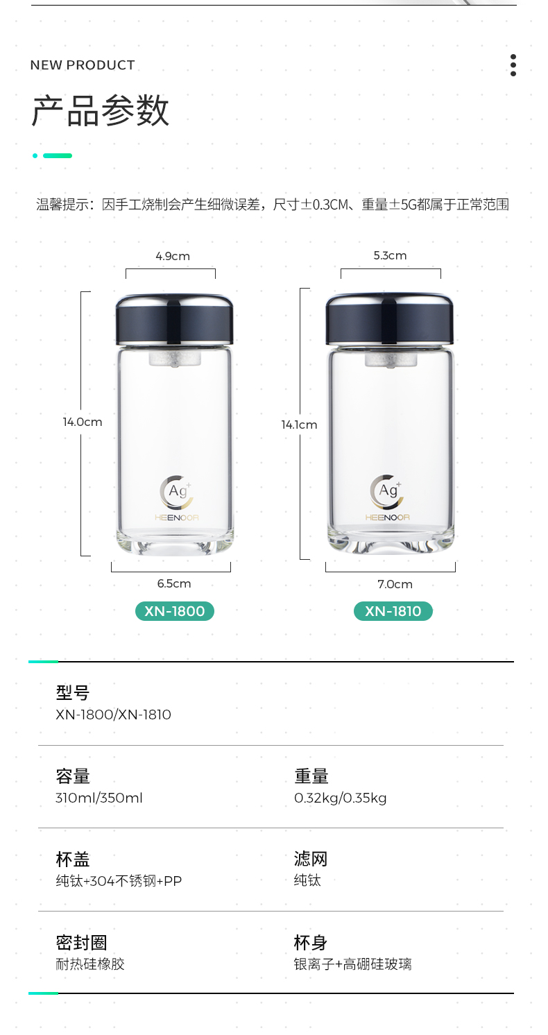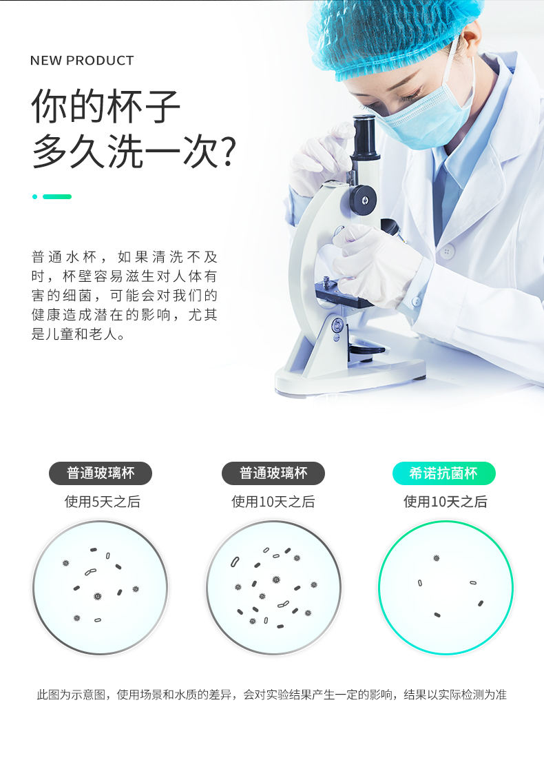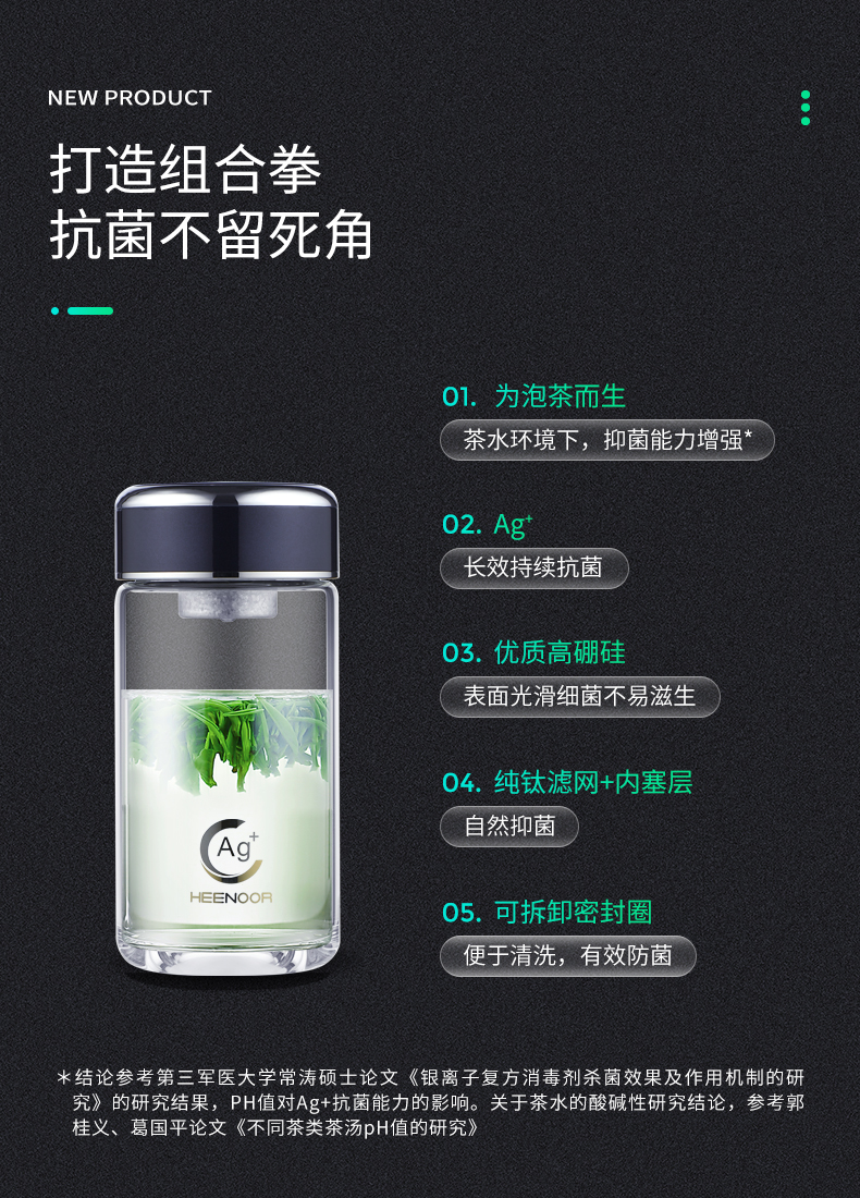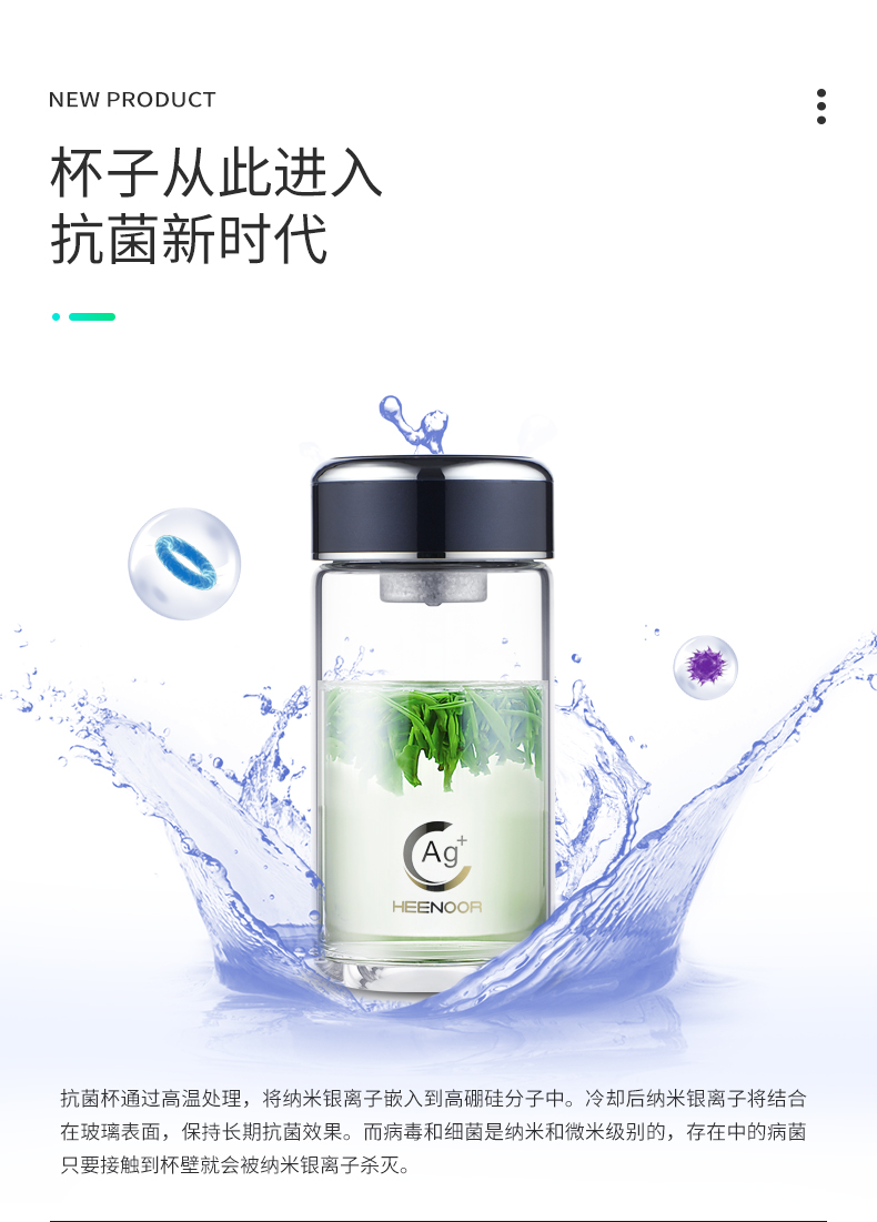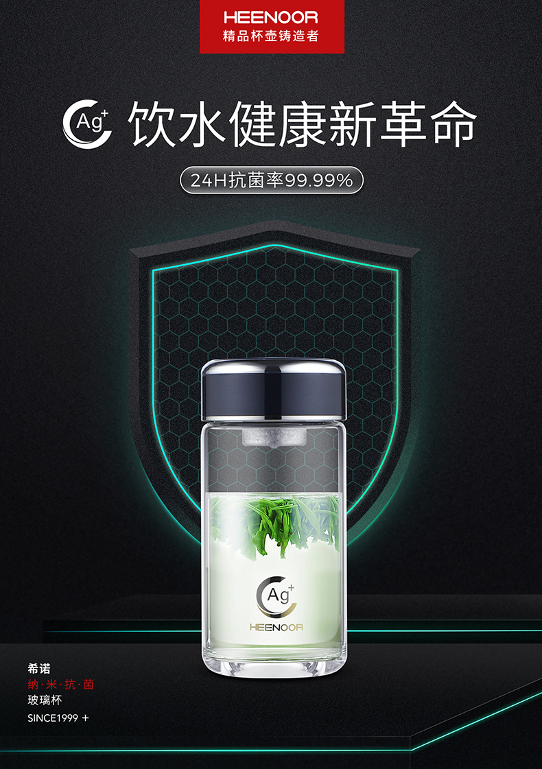 希诺(HEENOOR)玻璃杯抗菌杯纳米
