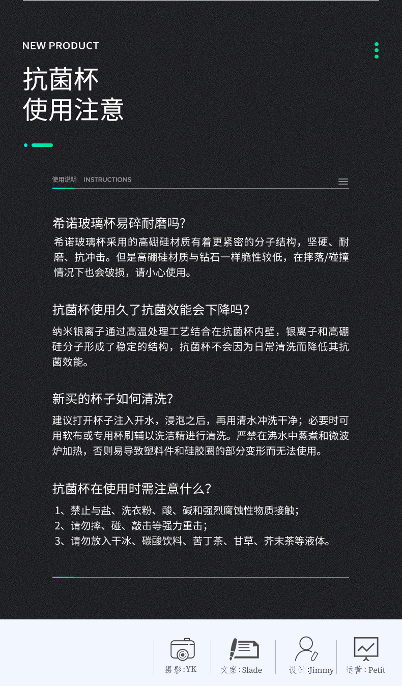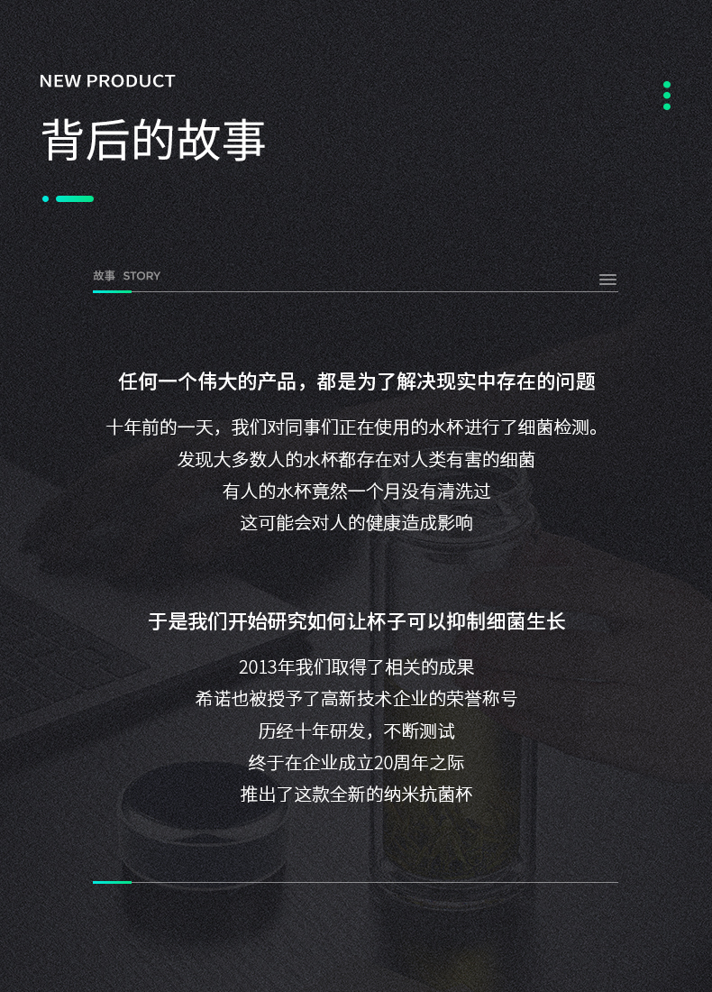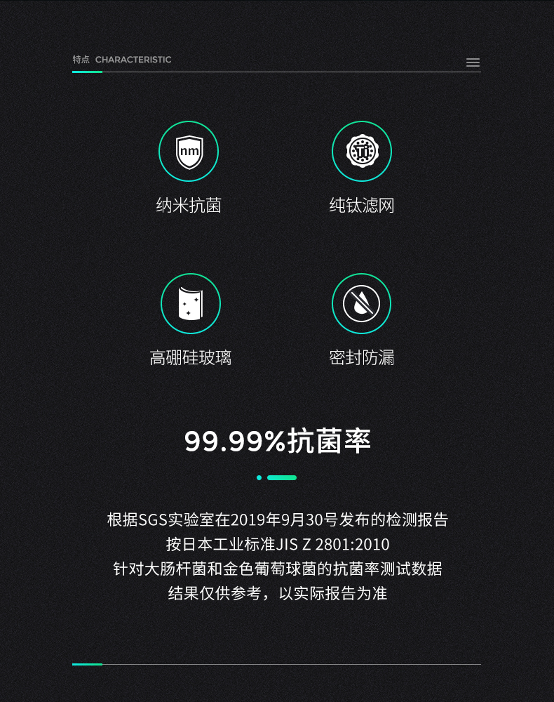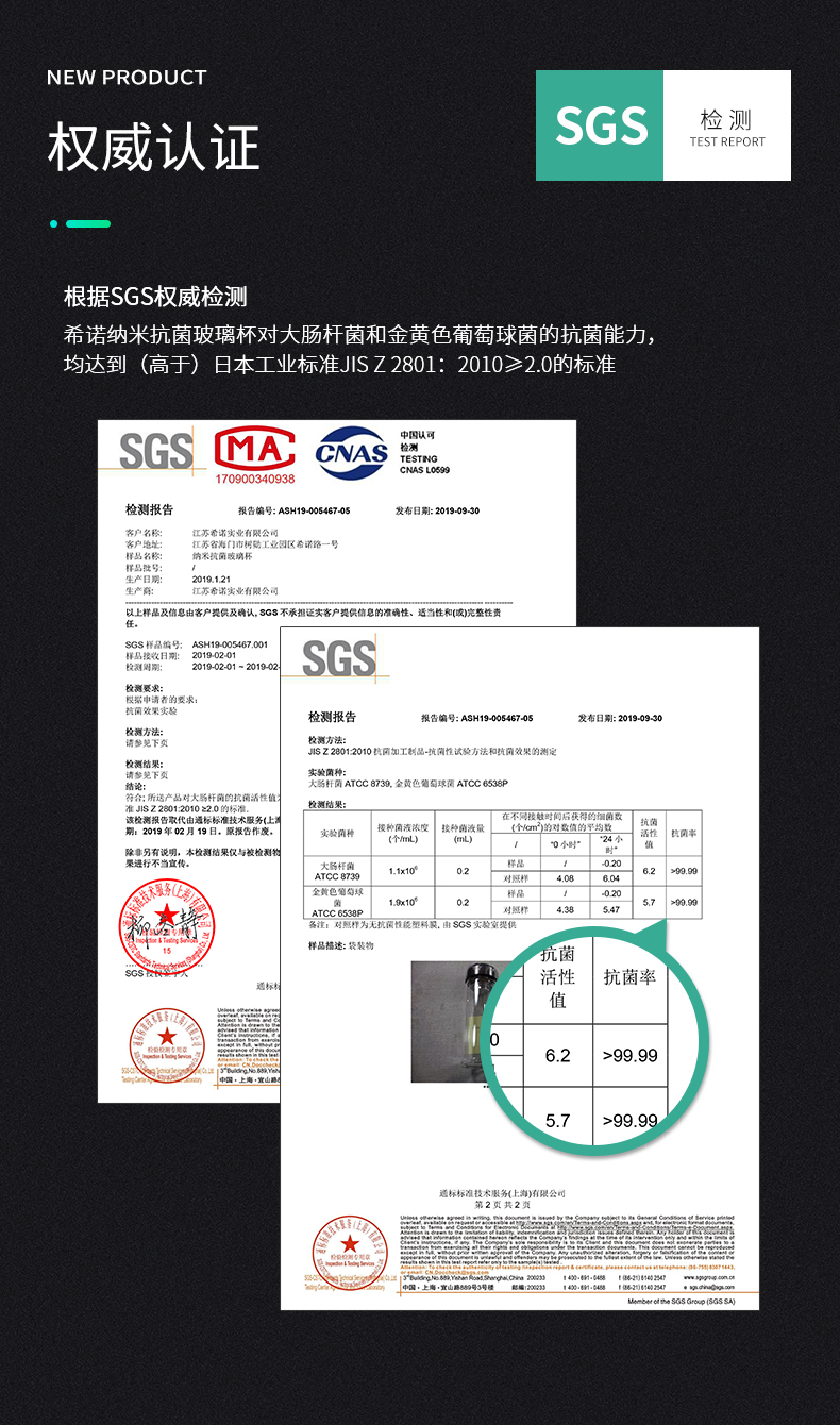 希诺(HEENOOR)玻璃杯抗菌杯纳米