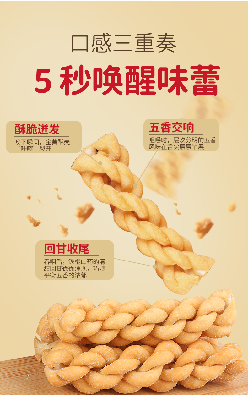 【到手两箱】张宝山铁棍山药麻花 600克*2箱 加入30%铁棍山药原浆 低油工艺 根根酥脆