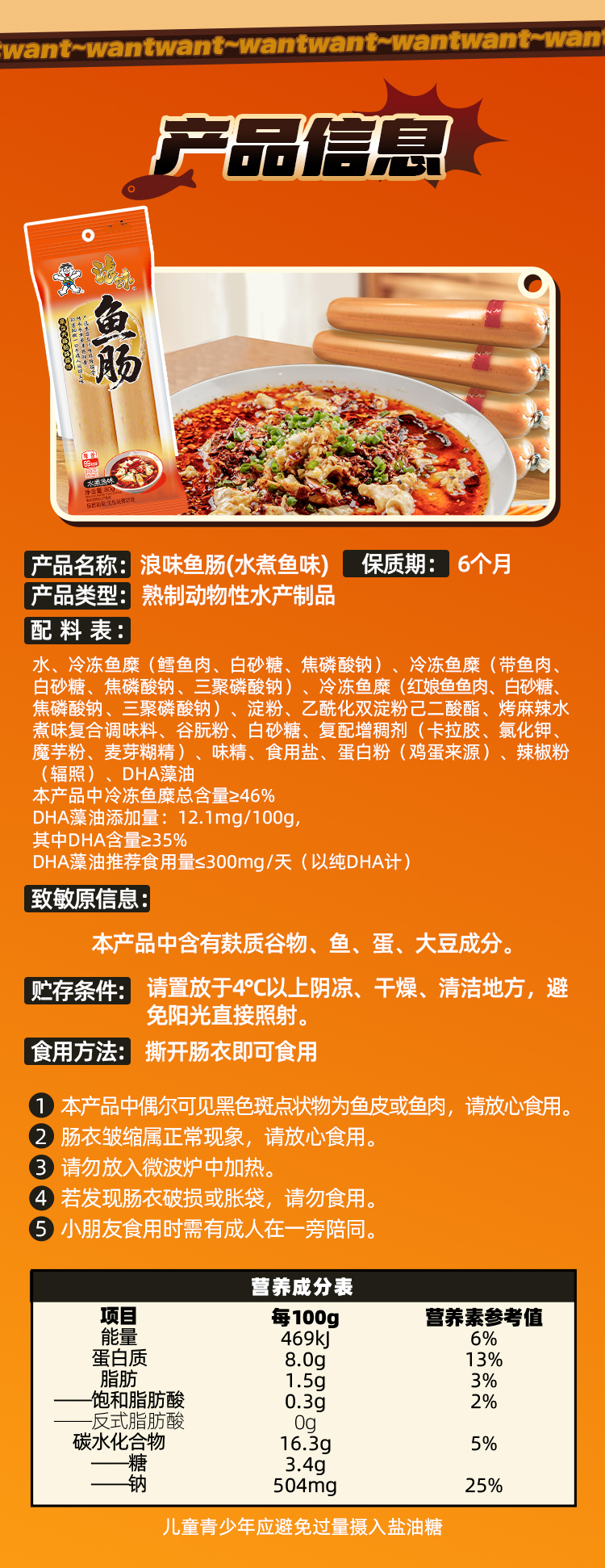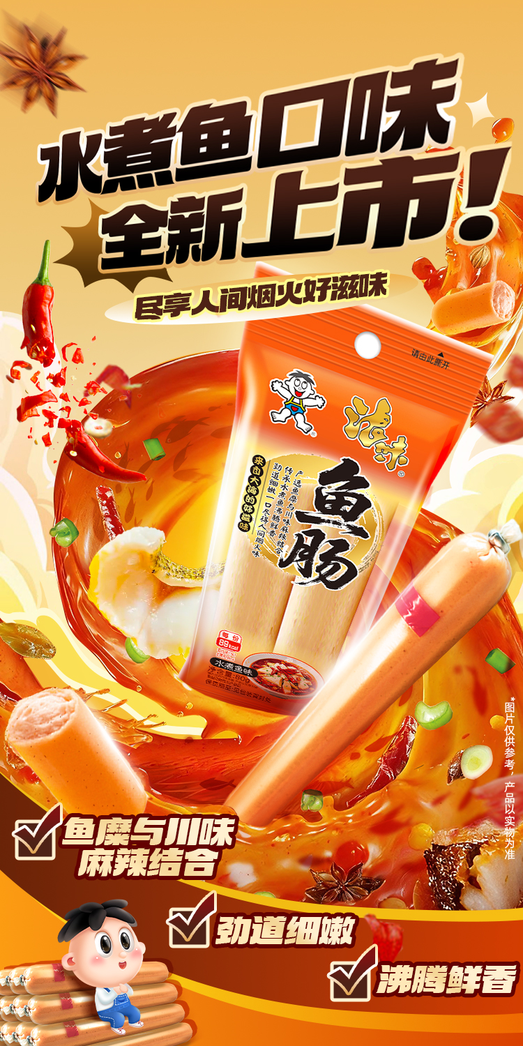 浪味鱼肠 优质高蛋白开袋即食水煮鱼味