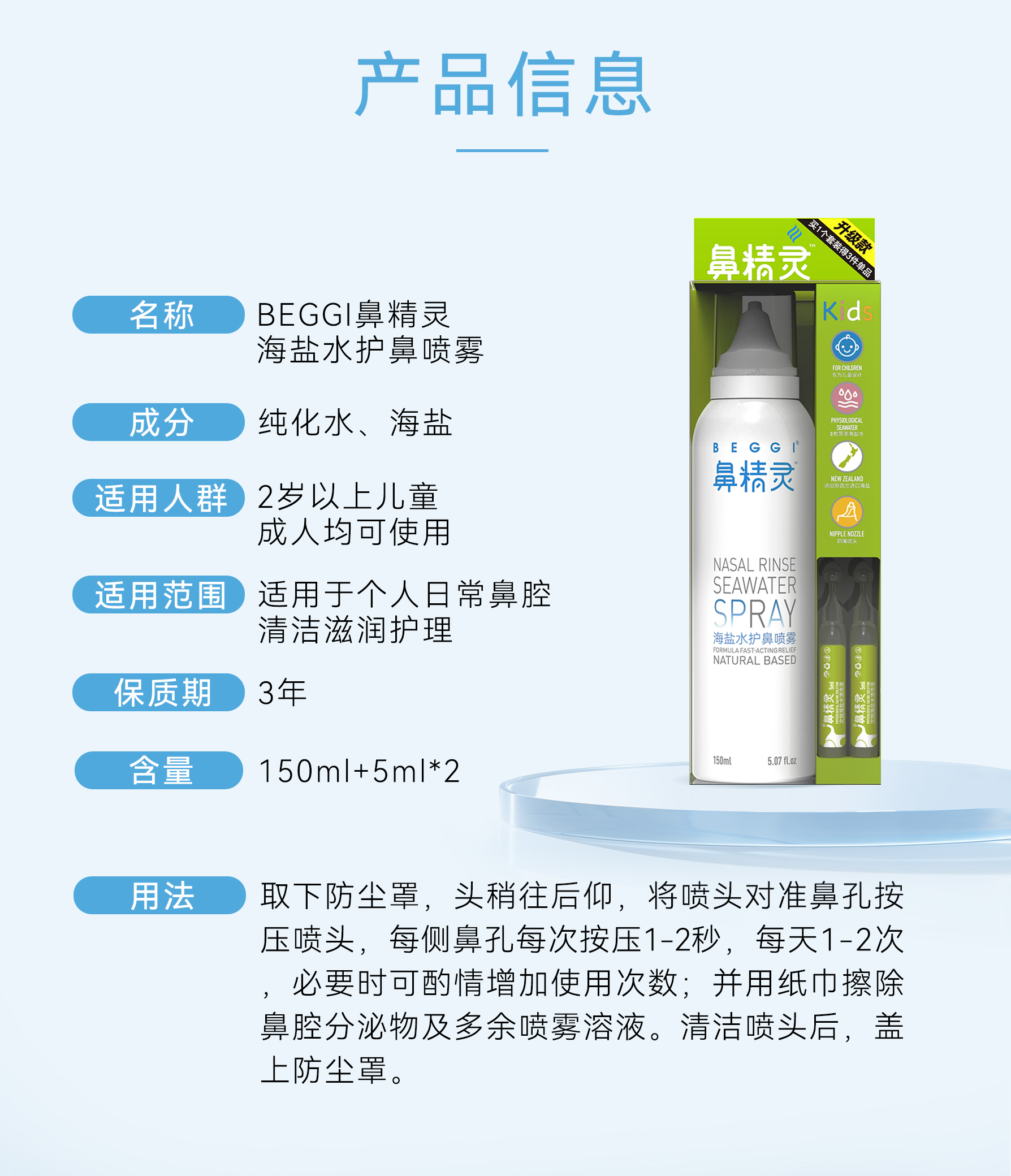 优选丨鼻精灵儿童海盐水护鼻喷雾套装150ml+5ml*2