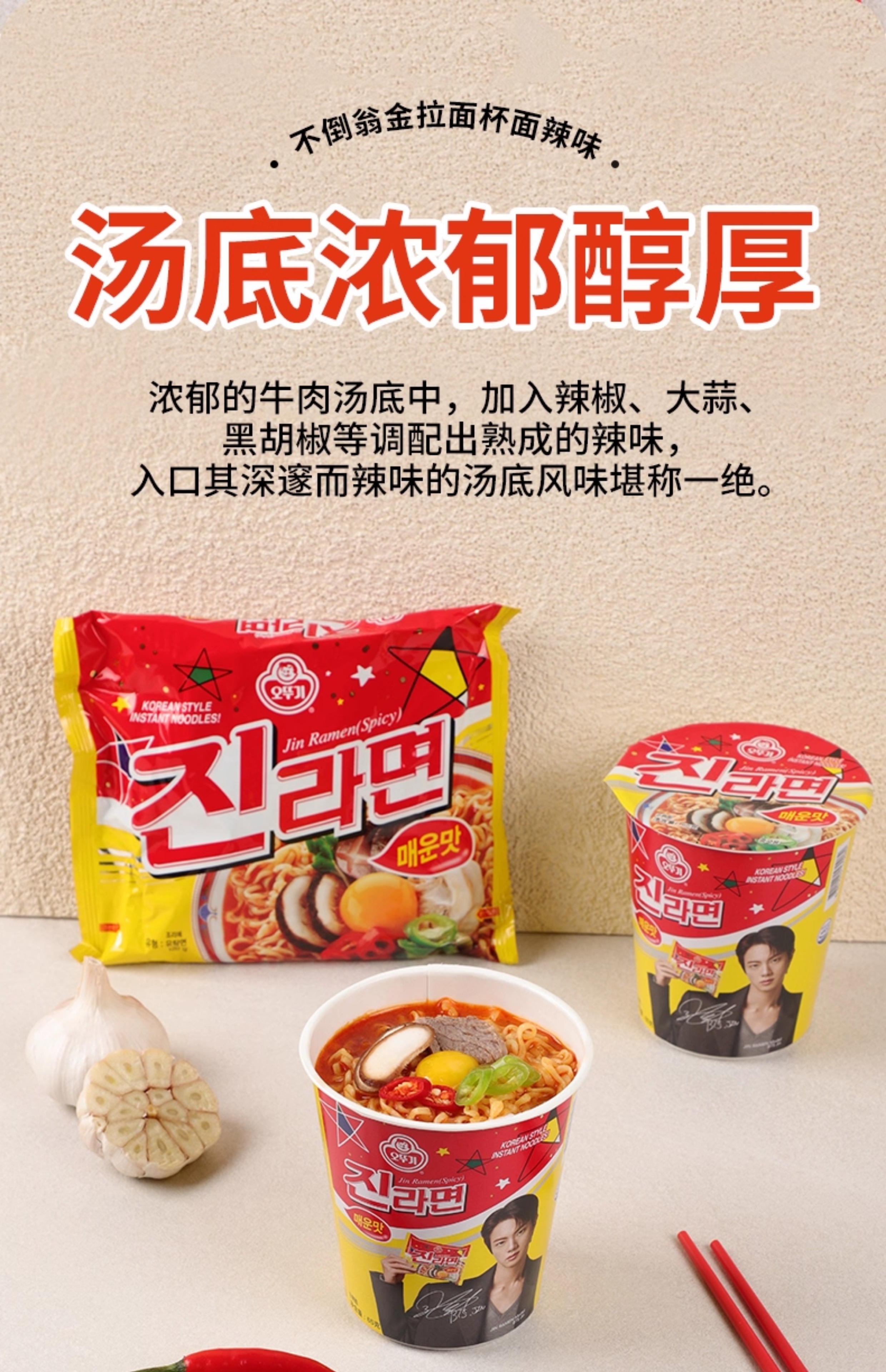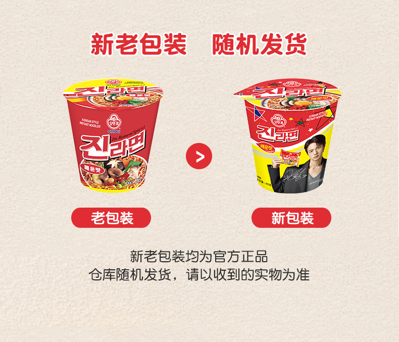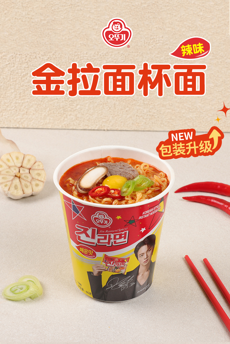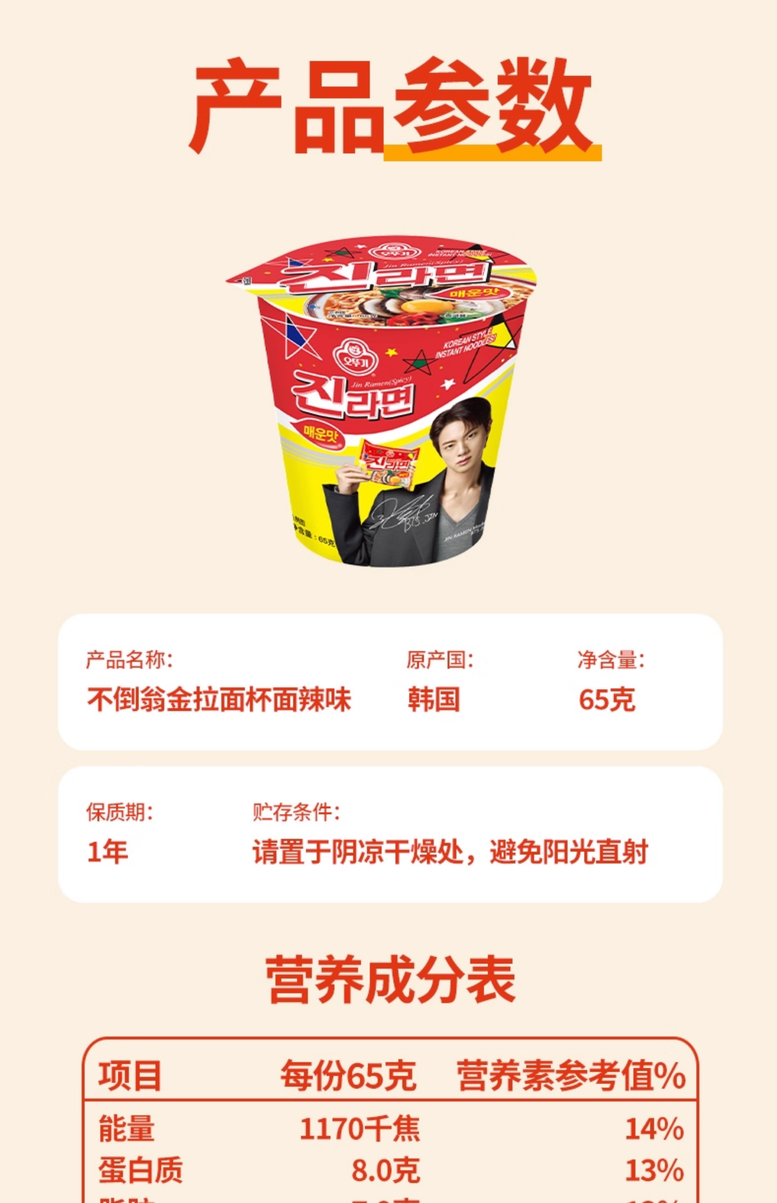 不倒翁 金拉面杯面 辣味 方便面 65g/杯