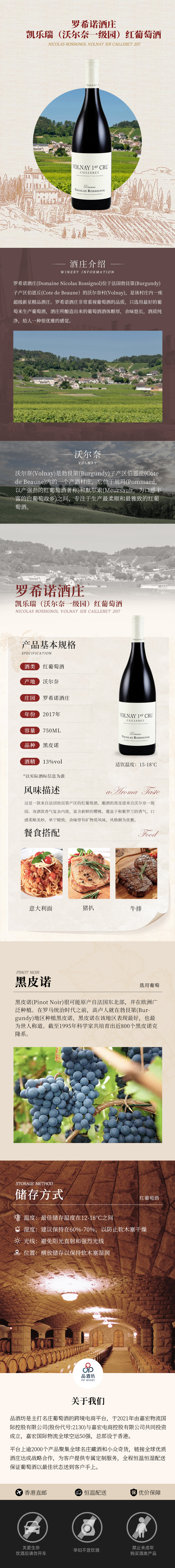 2017 Nicolas Rossignol Volnay 1er Cailleret 罗希诺酒庄凯乐瑞(沃尔奈一级园)红葡萄酒