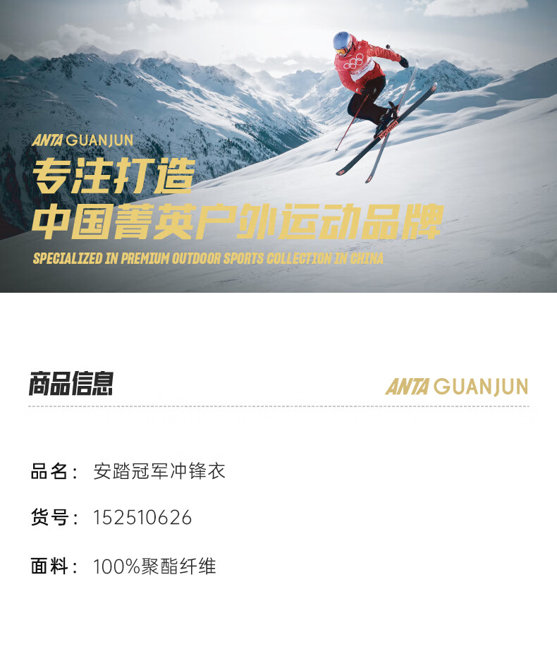 安踏冠军户外系列 【山锋】男士冲锋衣防风专业徒步越野152510626