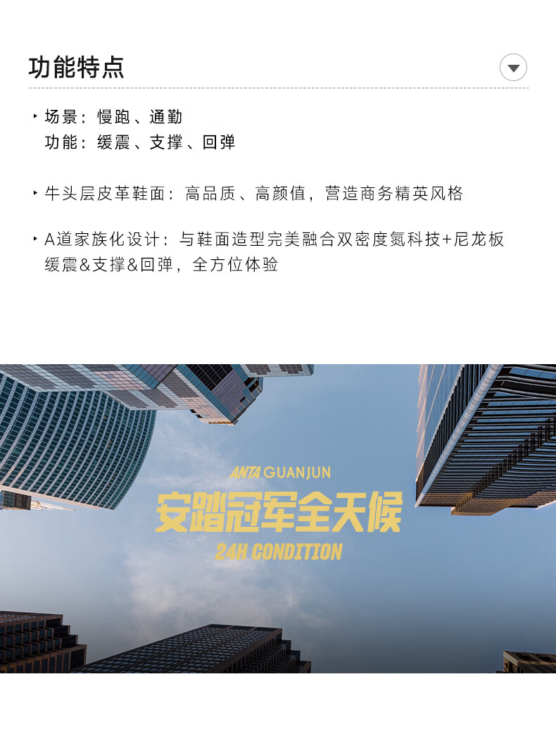 安踏冠军荣耀2代丨都市版全天候系列通勤缓震回弹跑步鞋子112515572A