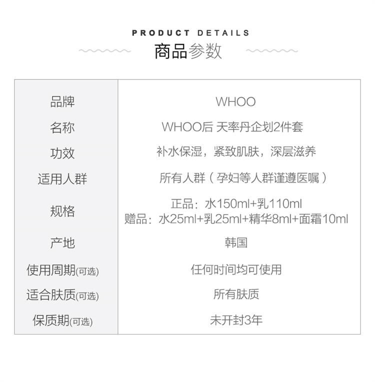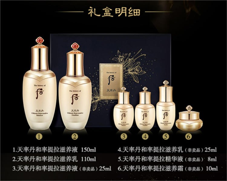 水150ml+乳110ml+水中样25ml+乳中样25ml+精华中样8ml+面霜中样10ml/套