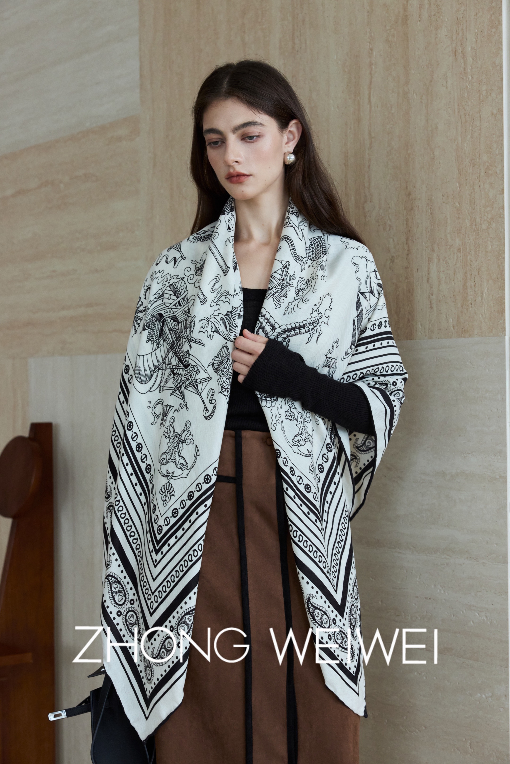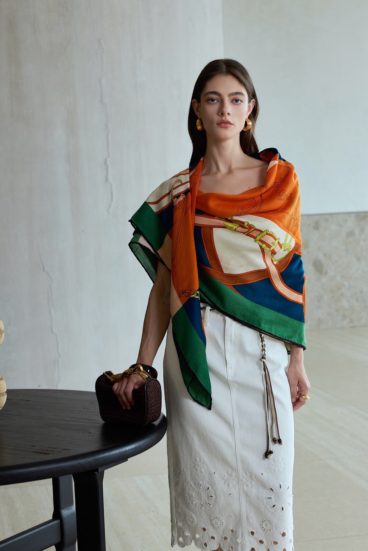 氛围感满满的中古印花围巾