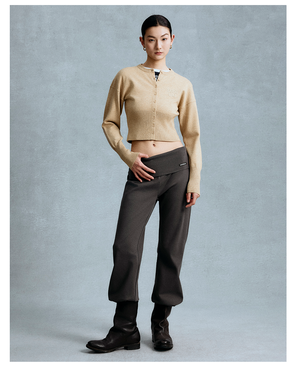 GOODBAI 秋冬新款圆领收腰长袖针织开衫
