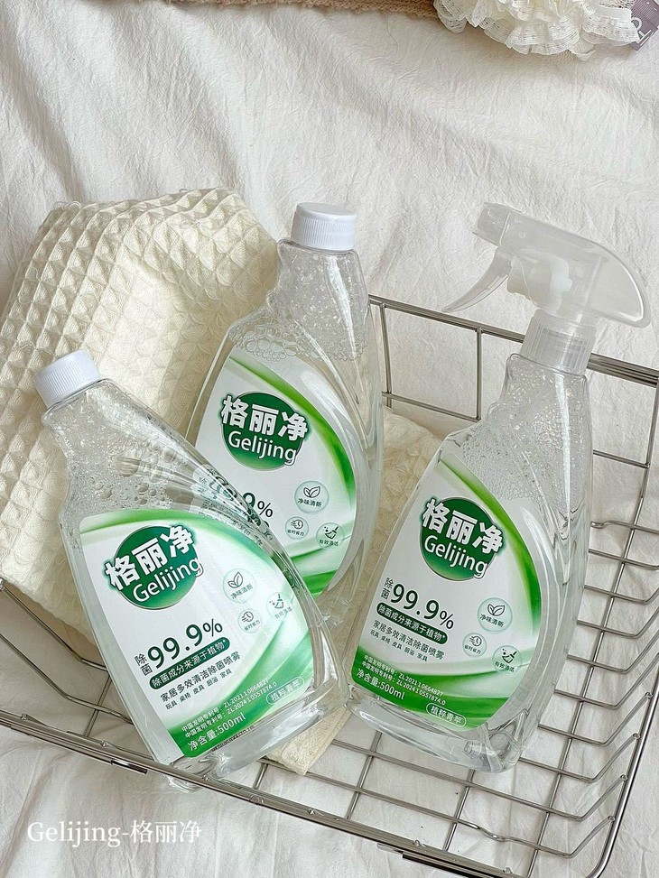 格丽净家居多效清洁除菌喷雾 采用甘蔗蔗糖发酵而成的乳酸除菌成分 不添加人工色素、防腐剂 温和守护您与宝宝的健康安全。