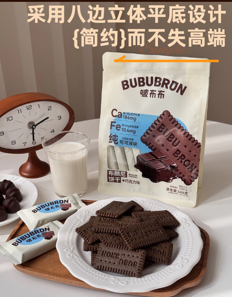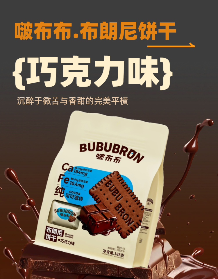【品名】:啵布布.布朗尼饼干【规格】:sku1:188g*3袋(巧克力味)sku2:188g*3袋(黄油鸡蛋味)