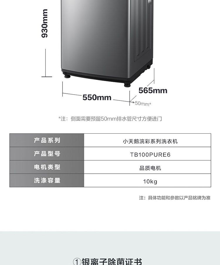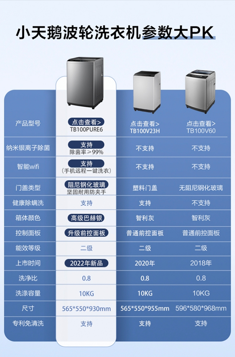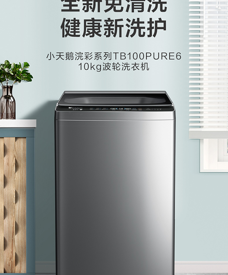 小天鹅 (LittleSwan)波轮洗衣机全自动家用大容量 银离子健康除菌除螨 智能手机控制租房神器 10KG 升级纳米除菌TB100PURE6