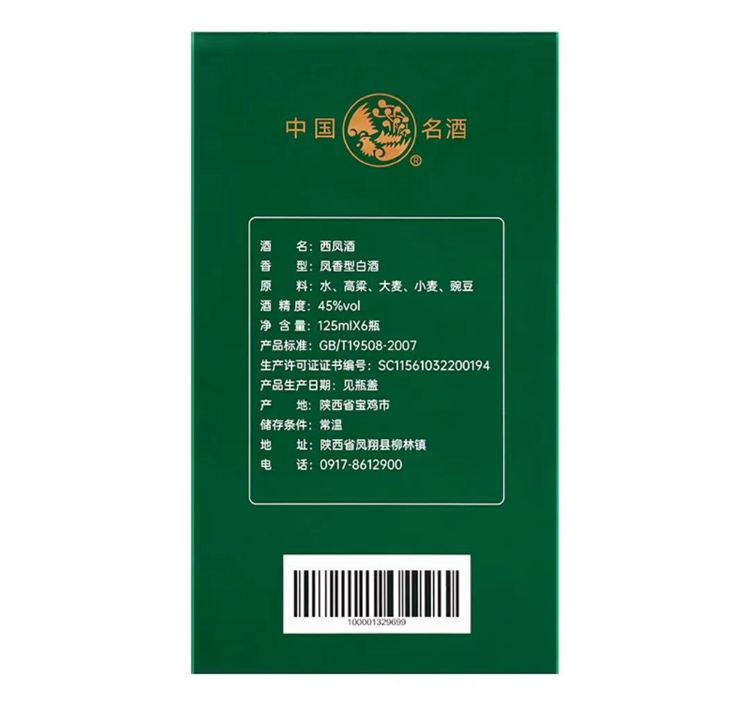 【单瓶16】西凤酒经典礼盒分享装 45度 凤香型白酒 125ml*6瓶礼盒装