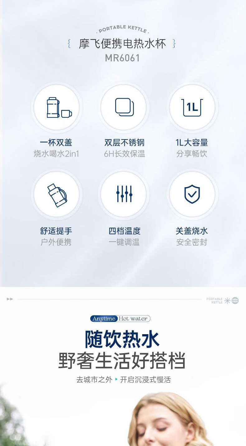 摩飞 便携电热水杯MR6061白色