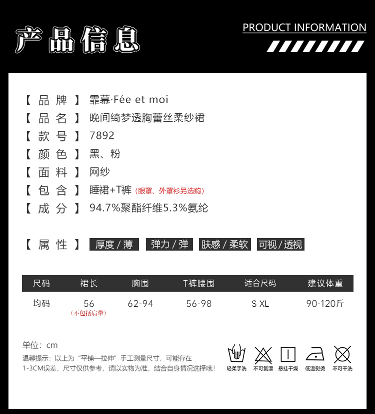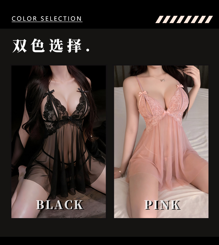 【情趣内衣】霏慕 晚间绮梦透胸蕾丝柔纱裙7892